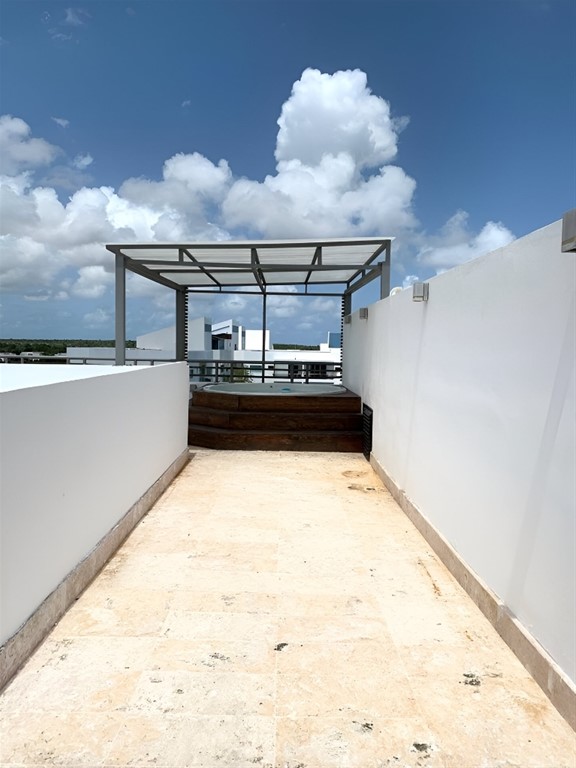 VENDO: Pent-house de 2 niveles en Cap. Cana, en proyecto cerrado, Condómino La Arboleda. Condominio La Arboleda Primer Nivel: 3 Habitaciones 3 ½ Baños Sala Comedor Cocina Desayunador Balcón 1 Habitación de Servicio con Baño Segundo Nivel: 1 terraza destechada. ½ Baño Jacuzzi en área techada AMENINADES GENERALES: Portón manual. Cámaras de seguridad. Terminación en madera preciosa y en cedro. Pisos en Cerámica. Cerámica importada en los baños. Equipo Rw