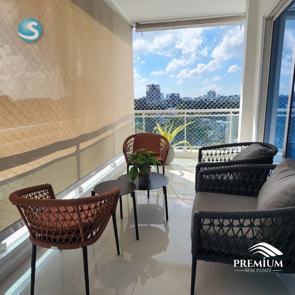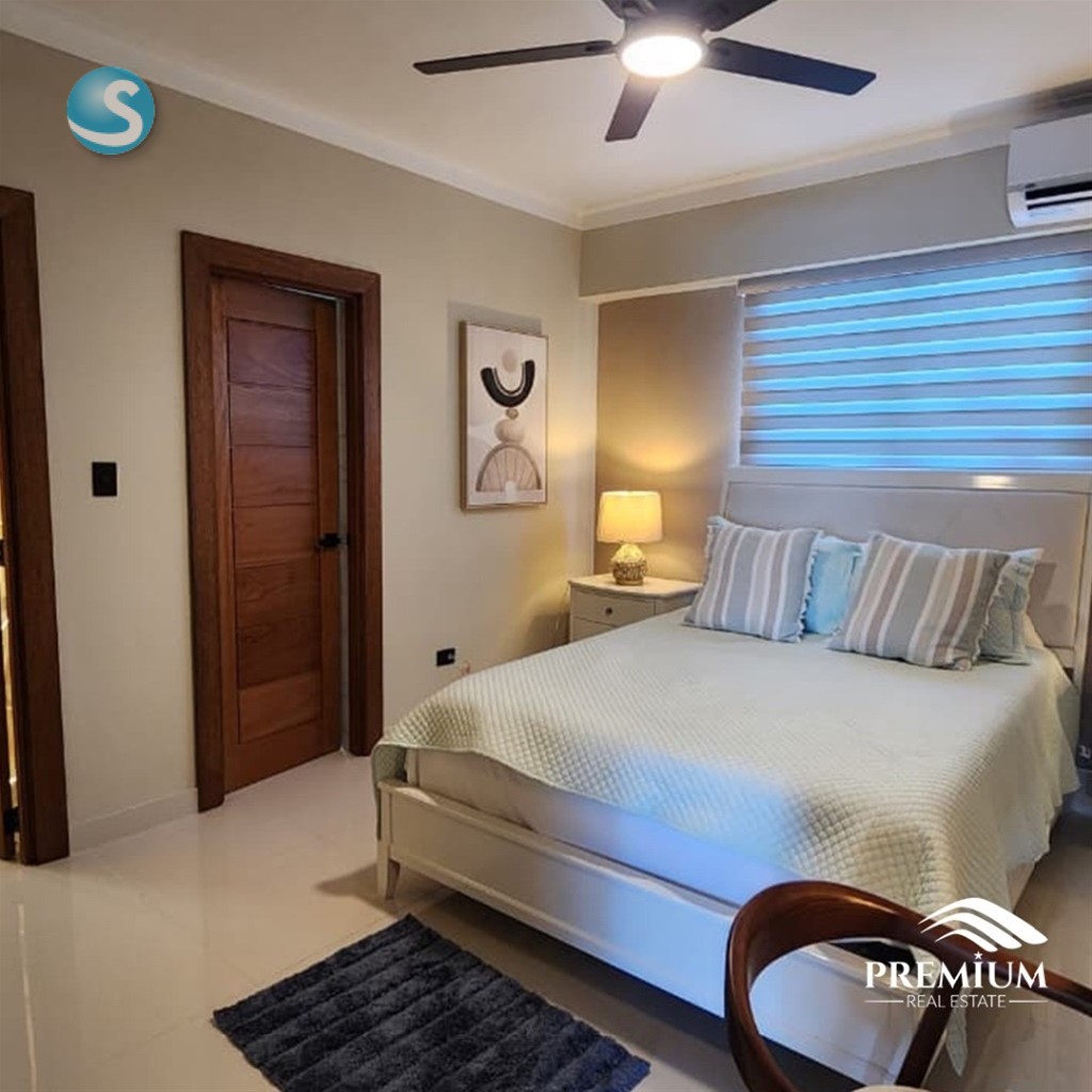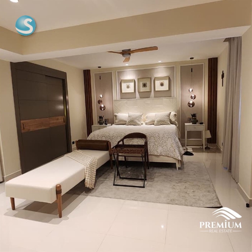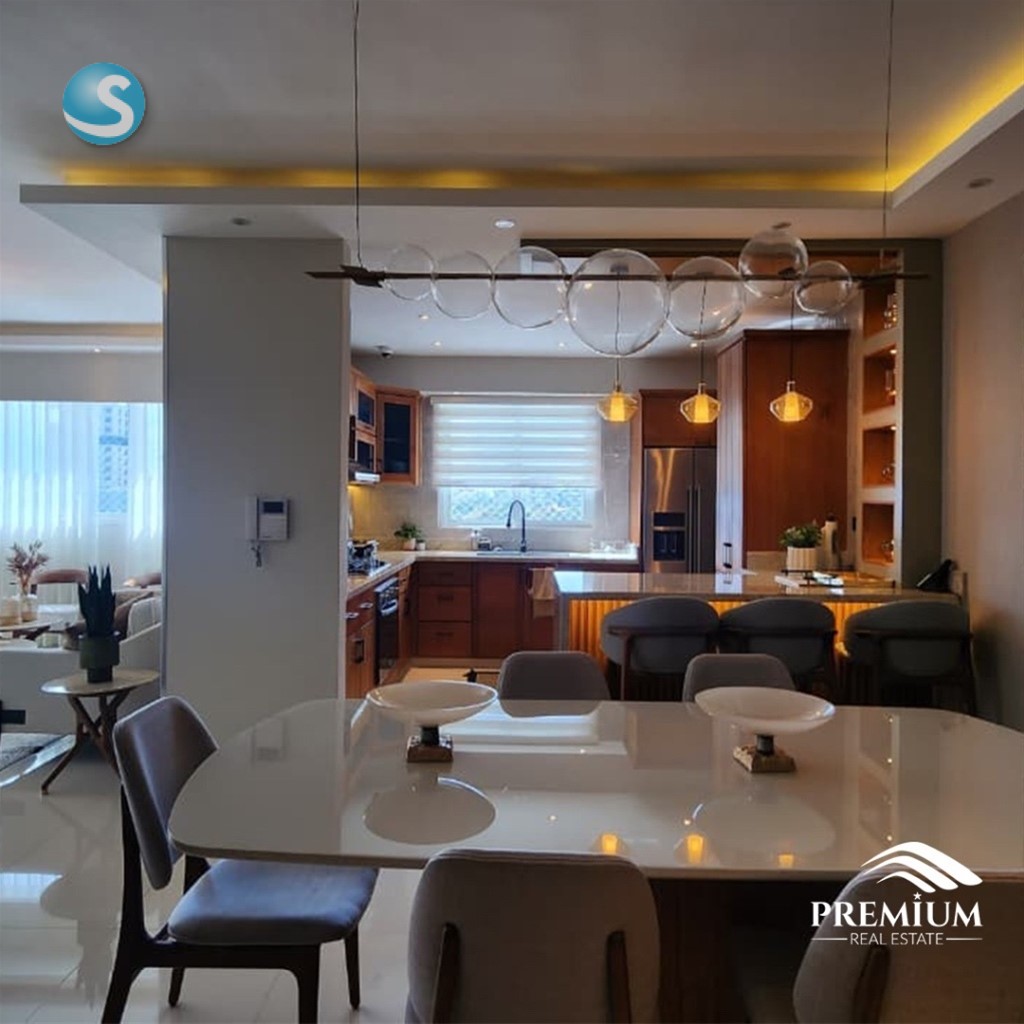 EL MILLÓN – Penthouse Finamente Amueblado y Decorado 378 m² |Pisos 6 y 7 Precio de venta amueblado: US$610,000 Mantenimiento: RD$12,500 Primer Nivel: • Recibidor • Sala / Comedor • Medio baño de visita • Cocina fría + Cocina caliente • Habitación de servicio con baño • Balcón frontal con vista despejada • 3 habitaciones con baño Segundo Nivel: • Habitación principal con baño y doble clóset • Estudio • Bar • Baño de visita • Terraza privada con jacuzzi, área de BBQ, deck y vista panorámica Características adicionales: Sistema de circuito cerrado Repetidores de WiFi 3 parqueos paralelos + 2 lockers Lobby Gas común Seguridad 24/7