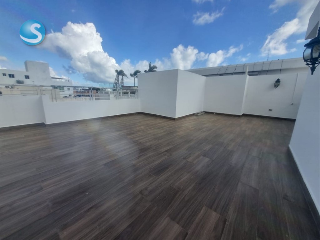 Excelente PH en zona premium del Millón, ideal para familia pequeña o pareja joven o como primera compra para vivir o inversión. A pasos de la Av. Núñez de Cáceres y Supermercado Nacional Características del apartamento (PH): 177 m² totales 2 habitaciones con clóset Habitación principal con baño 2 baños Sala Comedor Cocina Balcón Terraza privada de 83 m² Excelente ventilación e iluminación natural Vista despejada 2 parqueos lineales Área de lavado Portón eléctrico Seguridad 24/7 4to piso sin ascensor (escaleras amplias y cómodas) No tiene cuarto de servicio Gas comun con medidor Planta electric para areas comunes Precio: US$215,000 Contáctame para más información o agendar visita