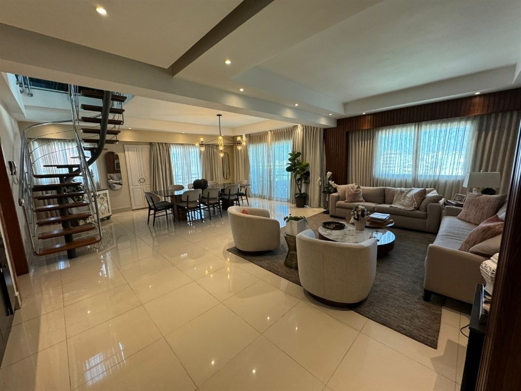 Categoría: Penthouse Sector: Evaristo Morales Habitaciones: 3 Metraje: 346 mt2 ( 25 mt2 de terraza ) Parqueos: 2 Primer nivel: Amplia sala Comedor Balcón Amplia cocina cerrada Área de lavado y servicio Habitaciones C/U con su baño Habitación principal con balcón y 2 WC. Segundo Nivel: Área de bar Family room / estudio Medio baño Oficina Terraza Incluye: Línea blanca cocina Aires Shutters y mallas Precio de venta: US$ 550,000 Mantenimiento: RD$ 18,815