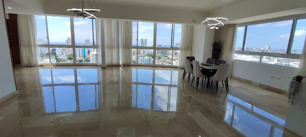 Penthouse de Lujo en Evaristo Morales ¡Vista al mar, doble altura y terminaciones premium! 480 m² | 2 niveles 4 hab. | 4.5 baños | Área de lavado + servicio Cocina moderna | Sala + comedor | Terraza privada -Piso en mármol -Aire central + inverter -Cristales antiruido + puerta blindada -3 parqueos + 2 lockers -Ascensores privados -Planta full + gas común -Gimnasio | Lobby | Seguridad 24/7 Precio US$595,000 Mantenimiento: RD$23,850 Agenda tu visita y haz realidad tu inversión ideal. Verónica Lanza 829-263-1290 ¡Con Dios todo es posible!