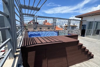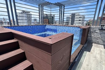 Apto piso 8 con terraza privada en piso 10.. Espectacular apartamento con 3 amplias habitaciones. Principal con dos walk in closets amplios forrados en cedro. Piso en madera y amplio balcón privado mas closet lineal. Baño con dos lavamanos. Habitaciones secundarias con baños integrados. Cocina con tope en marmol. Todo los pisos en marmol. Recibidor, Cocina, Balcón Sala, Comedor, Estar Familiar con puerta corrediza. Dos unidades de Aire Acondicionado integrados central. Piso 10 con 111m2 de terraza: 50% techado con madera para uso de estar familiar con baño completo y kitchenette y el otro 50% destechado con precioso Jacuzzi. DOS BALCONES CON SHUTTERS en el piso 8. Opcion de 4ta habitacion en la terraza privada ya que tiene baño completo, kitchenette, closet, aire y demas. Torre con Area social que incluye terraza techada para eventos, terraza destechada amplia y gimnasio. Lobby climatizado con cámaras etc. No permiten AIRBNB Mantenimiento 19,500 Posibilidad de alquilar 3er parqueo