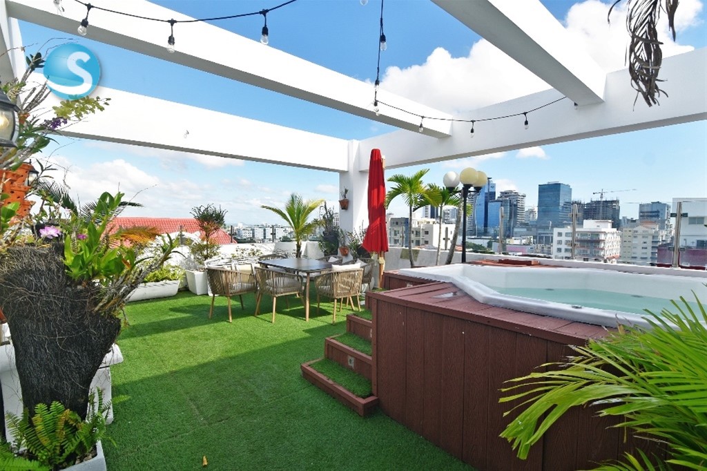 ESPACIOSO PENTHOUSE DE 3 NIVELES TOTALMENTE AMUEBLADO UBICADO EN EVARISTO MORALES ??,4hab???,4.5baños ??,Terraza con Jacuzzy ,Family,3 parqueos ??,Lobby, Ascensor ,planta full , Gym ??????,Terraza Común,Inversión US$495,000 430mts Nivel 1 Sala Comedor Balcón frontal Cocina 1 habitación con baño y w/c Medio baño de vista Habitación de servicio Área de lavado Clases de ropa blanca Nivel 2 3 habitaciones con baño y w/c Balcón con vista despejada en la habitación principal Nivel 3 Family con mesa de Villar y bar Tereza amplia destechada con Jacuzzy privado 3 parqueos paralelos y locker AMENIDADES Lobby Gym Cisterna Terraza común Área de bbq Conserje Planta full Gas con medidor Ascensor Cámaras de seguridad Seguridad 24 horas Inversión US$495,000 totalmente amueblada Ariana estaba 8299294899