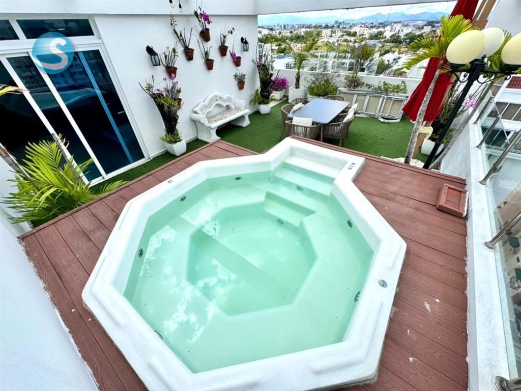 ? Penthouse en Venta – ??Evaristo Morales, Santo Domingo ? Exclusivo y amplio penthouse de 3 niveles, completamente amueblado. Ideal para quienes buscan vivir con estilo, amplitud y confort en una de las mejores zonas de la ciudad. ?? Precio: US$495,000 ?? Mantenimiento: RD$16,000 ?? Características generales: • 430 m² • 4 habitaciones • 4.5 baños • 2 balcones • Amplia terraza, jacuzzi • Family room • Salón de juegos • Cocina • Hab de servicio • Área de lavado • 3 parqueos + 1 locker ?? Distribución: 1er nivel: • Sala / Comedor • Balcón • Family room • Cocina • Hab. Sec. con baño • Habitación de servicio • Área de lavado 2do nivel: • Habitación principal con balcón, baño y walk-in closet forrado en cedro • 2 habitaciones secundarias con sus baños 3er nivel: • Terraza privada con jacuzzi • Salón de juegos • Medio baño ?? Amenidades de la torre: • Lobby • Gimnasio • Terraza • Seguridad 24 horas • Planta full ?? Contáctame para más información o agendar una visita.