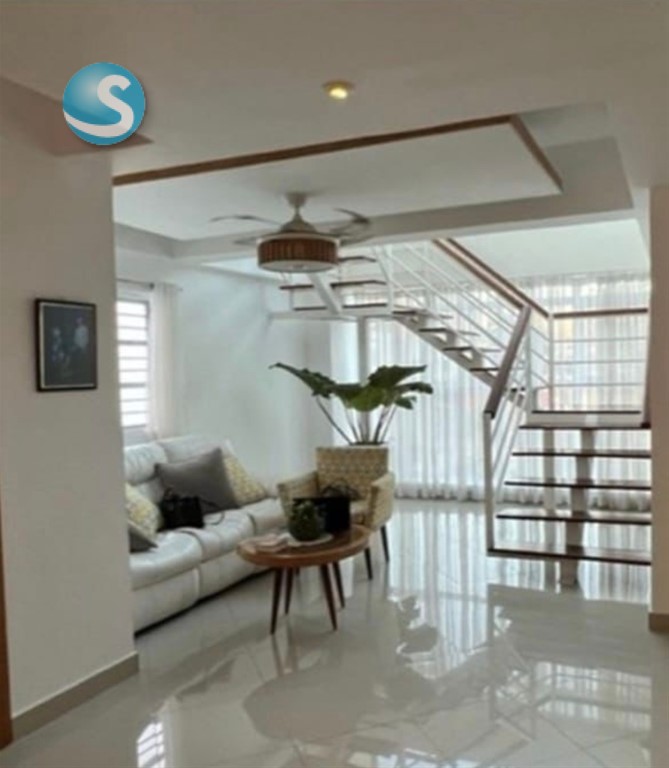 Excelente apto de dos niveles en el Julieta 4 habitaciones 3.5 banos Sala comedor Cocina Área lavado Habitación servicio Estar familiar 2 parqueos techados 4to piso Lobby 259mt Gas común portón eléctrico Vigilante Citas Ana Livia 809-440-0223