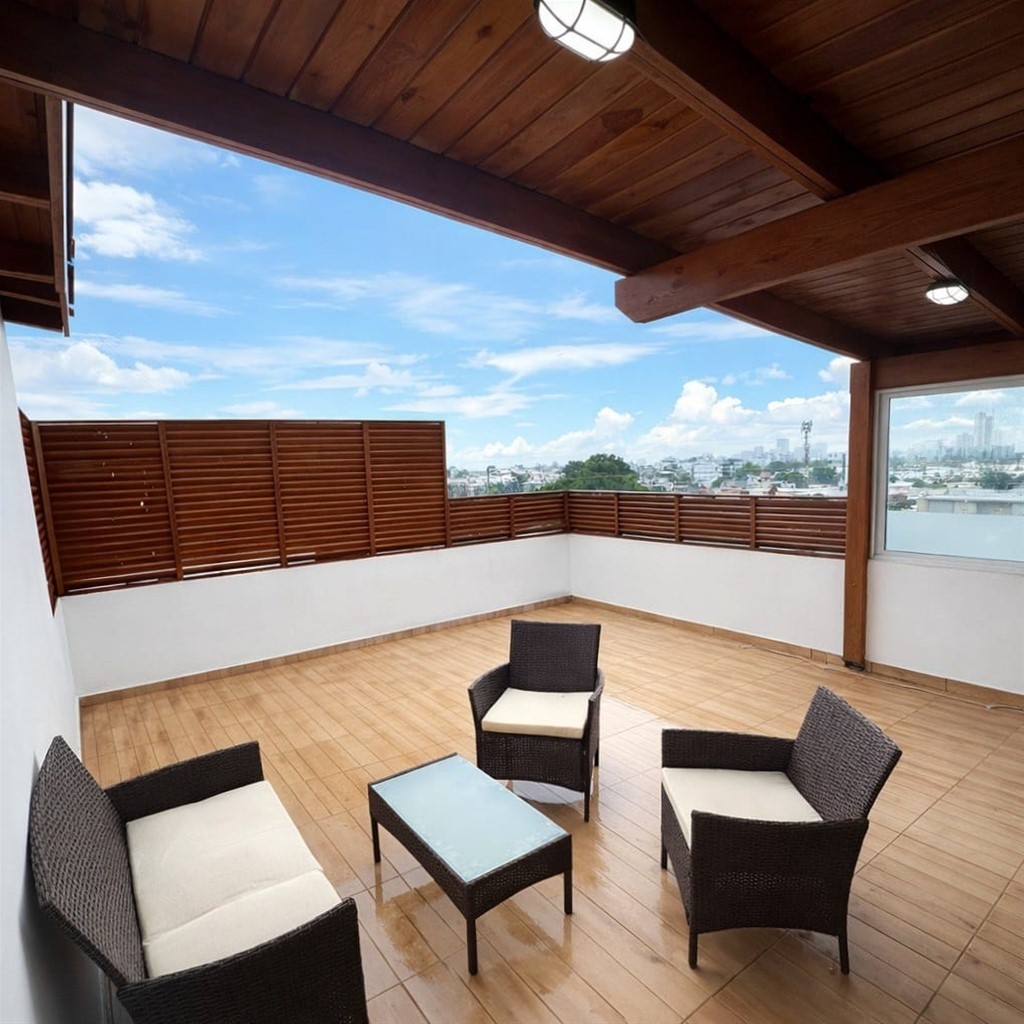 ? Penthouse de 2 Habitaciones con Terraza de 65 m² – Doble Ambiente ? Si buscas un penthouse funcional, cómodo y con una terraza amplia para disfrutar, esta es una excelente opción ?? ? ?? Distribución del apartamento ?? Primer nivel • 2 habitaciones • 2 baños completos • Sala y comedor • Cocina funcional • Ambientes bien iluminados y ventilados ?? Segundo nivel – Área social • Estudio / family room • Baño completo • Terraza privada de 65 m², techada y destechada • Espacio ideal para reuniones, descanso o entretenimiento ? ?? Parqueo • 1 parqueo ? ?? Amenidades del edificio • Ascensor • Planta eléctrica full • Gas común • Vigilancia 24 horas • Administración externa ?? Mantenimiento: RD$6,300