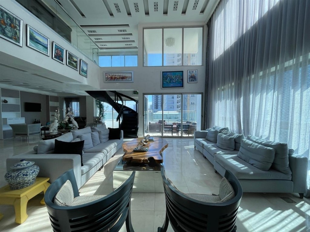 Agente Mayka Estrella /Franco Contacto: 849-856-5217 / (829) 641-3978 Propiedad: PentHouse Amueblado Sector: Los Cacicazgos Metraje: 1300 mts2 Parqueos: 6 parqueos Habitaciones 5 Alquiler Amueblado USD$ 9,0000 (Mantenimiento Incluido) PentHouse Amueblado Moderno con vista al mar / de tres niveles / Área Social Privada con Piscina y Jacuzzi Características del penhouse en dos niveles - 5 Habitaciones - 7 Baños completos y 3 Medios baños - Sala - Comedor - Cocina Fría y Cocina Caliente - Área de Lavado - Cuarto de Servicio con Baño - Estar Familiar - Family Room - Estudio - Salón de Actividades y Oficina - Gimnasio y Sauna - 2 Terrazas Exteriores - Piscina - Ascensor Privado Amenidades de la torre: - Lobby climatizado - Seguridad 24 horas - Cámaras de video vigilancia - Cisterna - Planta eléctrica - 2 Ascensores *** FIEL ES EL SEÑOR, QUE OS AFIRMARA Y GUARDARA DEL MAL***