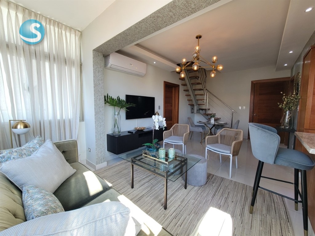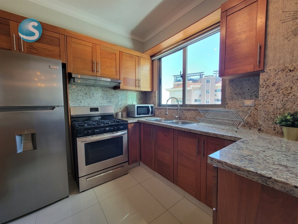 Mini-Penthouse con terraza amueblado, Los Cacicazgos 1 Habitación con su baño 60 m2 + 72 m2 de terraza Cocina Sala Comedor Linea blanca Área de lavado 2 parqueos lineales Área social con: Gimnasio Lobby Piscina Precio de venta: US$ 207, 000 amueblado Precio de alquiler: US$ 1150 incl mant, amueblado ID:EB-GR3308 Para más información y fotografías adicionales, visita nuestro portal. https://www.tropical-livingdr.com/property/alquilo-apto-de-2-hab-amueblado-en-bella-vista?agent=oficinat_1