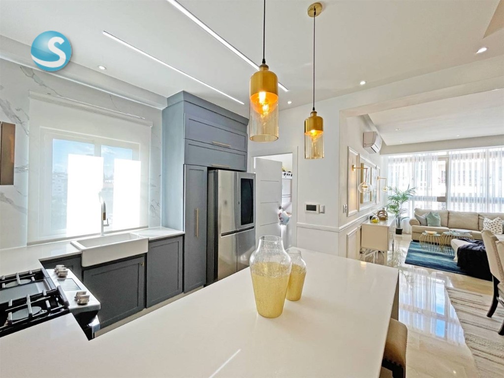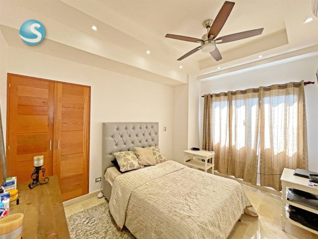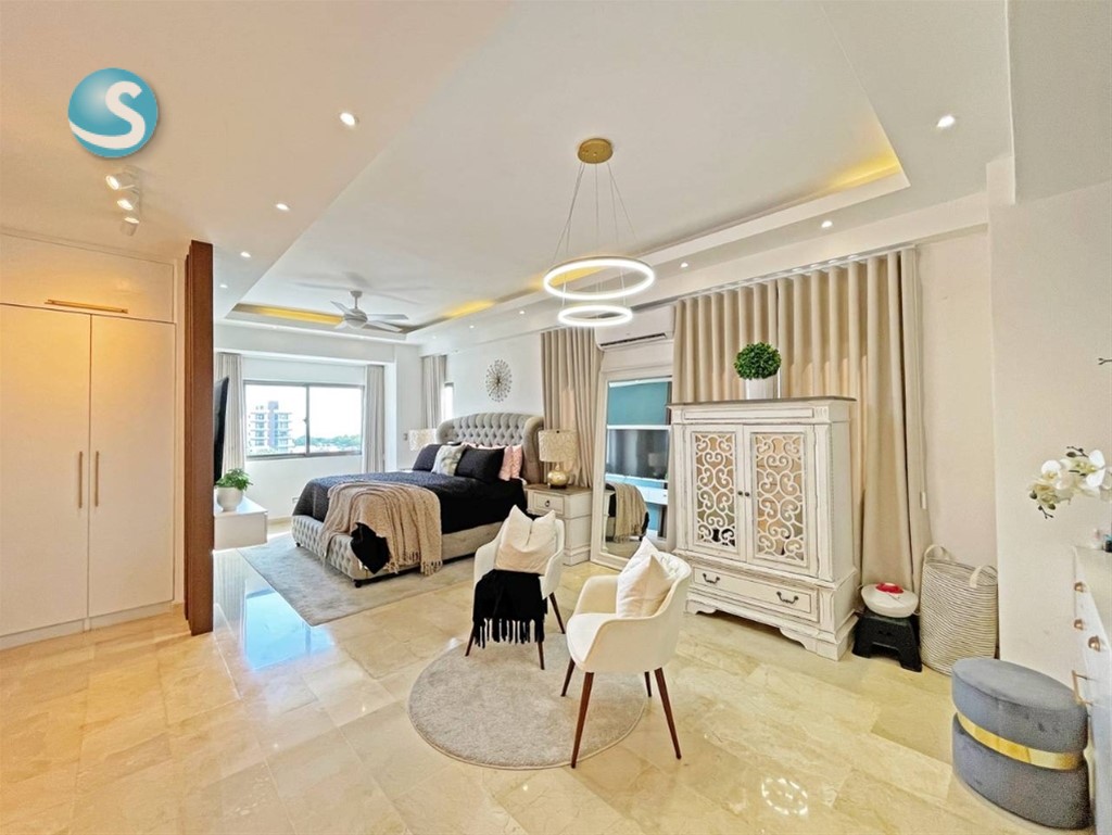 Majestuoso Penthouse en venta ubicado en Los Cacicazgos 266.67 mts2 2 NIVELES Piso 5 y 6 Ascensor con acceso a los dos niveles 3 habitaciones 3.5 baños Sala Comedor Cocina Tope en cuarzo Habitación de servicio con su baño Pisos en mármol Estar tipo oficina. Terraza techada Picuzzi Área BBQ 3 parqueos CARACTERISTICAS DEL RESIDENCIAL Ascensor Lobby climatizado Área común con jacuzzi Plata full Portón eléctrico Seguridad 24/7 Precio de venta amueblado US$ 430,000 Precio de venta vacio $400,000 Mantenimiento RD$18,600