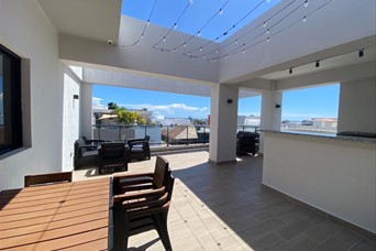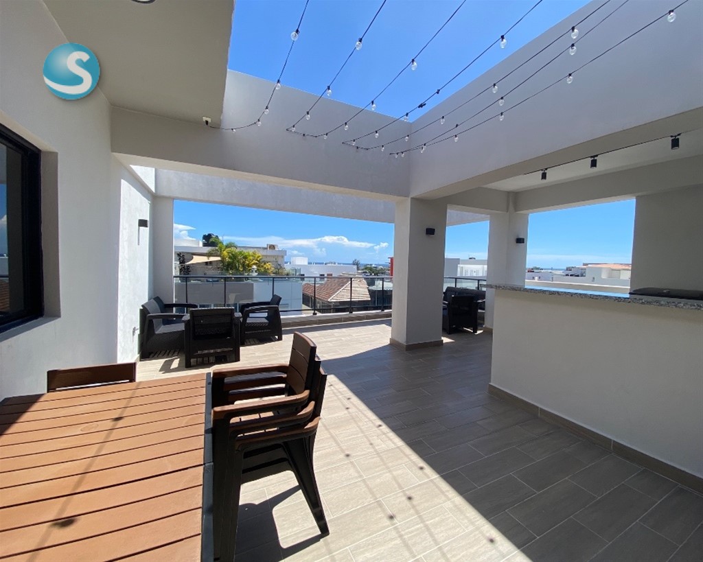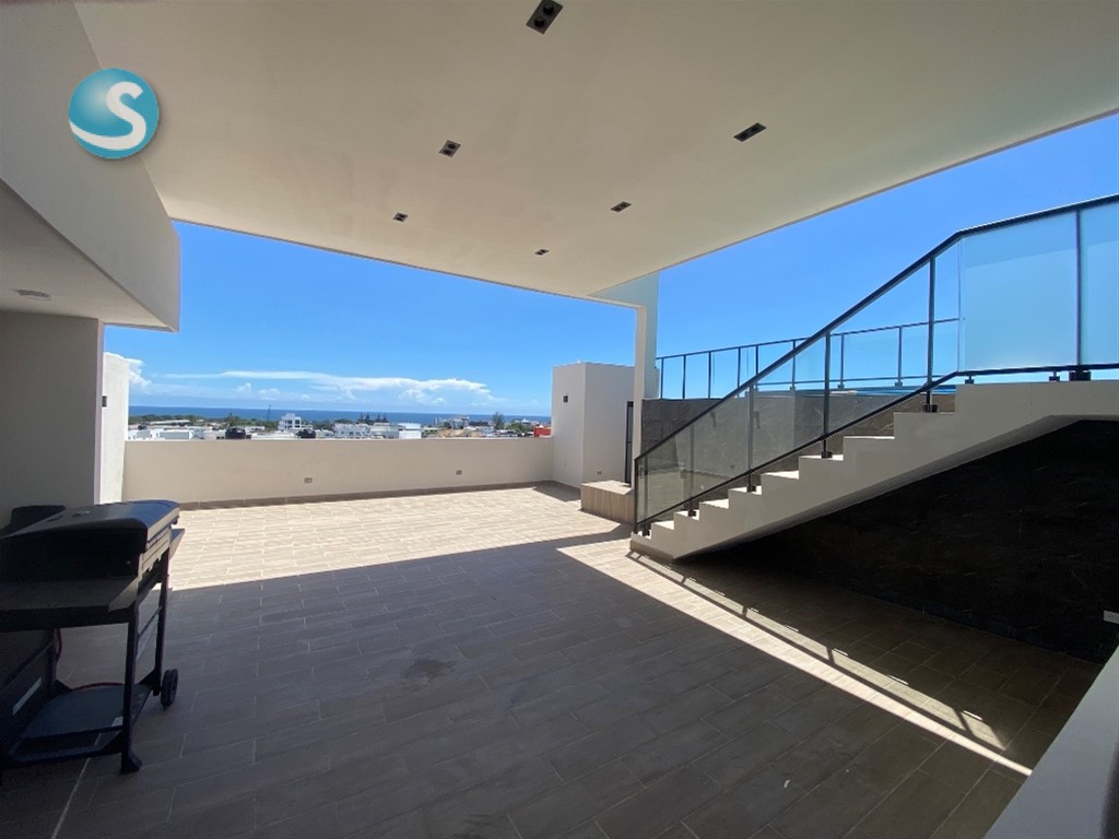 Descubra este exclusivo penthouse de tres niveles ubicado en Jardines del Sur, con una combinación única de modernidad, confort y una excelente ubicación cerca del Parque Mirador Sur. Con 155 metros cuadrados + 100 metros de terraza, distribuidos inteligentemente en tres plantas (niveles 5, 6 y 7), esta propiedad ofrece: 2 habitaciones más un estudio, ideal para oficina o tercera habitación. Área social moderna con sala, comedor y cocina en cuarzo. Área de lavado con cuarto útil, que aporta practicidad adicional. Terraza privada techada con jacuzzi, perfecta para disfrutar momentos únicos con familiares y amigos, acompañados de una vista al mar parcial/panorámica. 2 parqueos paralelos techados más locker privado junto al estacionamiento. La torre cuenta con: Ascensor. Gas común. Planta full. Área social con terraza común y gimnasio. Seguridad 24/7 con cámaras de vigilancia. Solo 2 años de construcción. Ubicado estratégicamente en una zona tranquila y residencial, cerca de supermercados, centros de salud, universidades, restaurantes, Downtown Center y con rápidas vías de acceso. Una oportunidad ideal para quienes buscan vivir con estilo, comodidad y exclusividad en Santo Domingo.