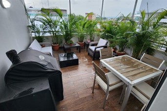 Penthouse en Venta – Los Restauradores Ubicado en una calle tranquila, limpia y libre de inundaciones. Características generales: Penthouse en 4to y 5to nivel SIN ASCENSOR Área total: 217.48 m² Área neta: 192 m² Distribución: 3 habitaciones (Habitación principal con walking closet) 3 baños completos 1 medio baño Recibidor Sala Comedor Cocina Área de lavado amplia Cuarto de servicio con su baño Estar familiar Medio baño de visitas Extras: Terraza destechada 2 parqueos paralelos techados Filtro de agua individual Sistema de cámaras de seguridad Paneles solares instalados y funcionando (no incluidos en el precio) Precio RD$13,000,000. Mantenimiento RD$4,400 + gas. Víctor García - VIDIVIC INMOBILIARIA SRL Cel. 809-258-6575 whatsapp