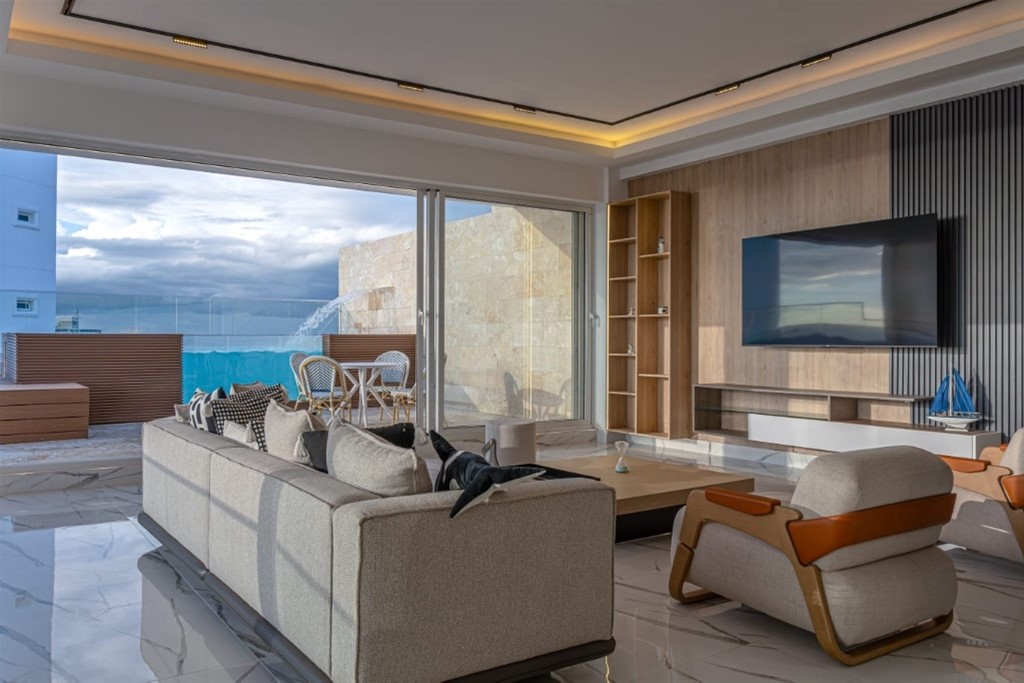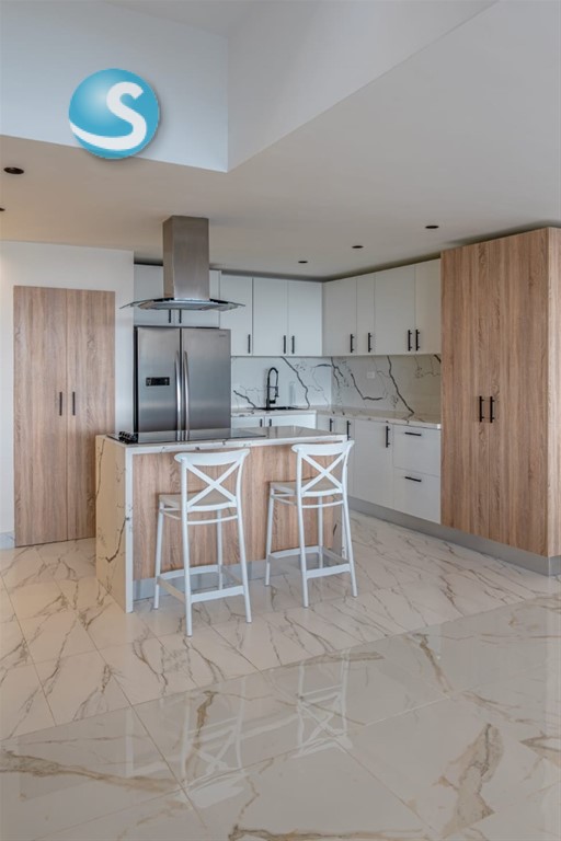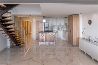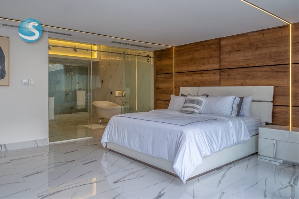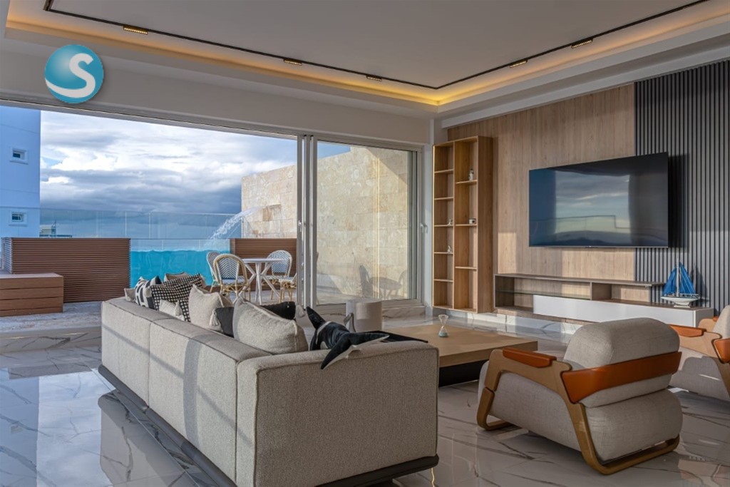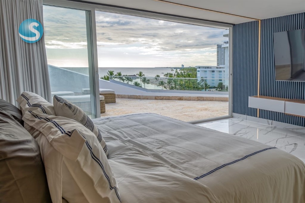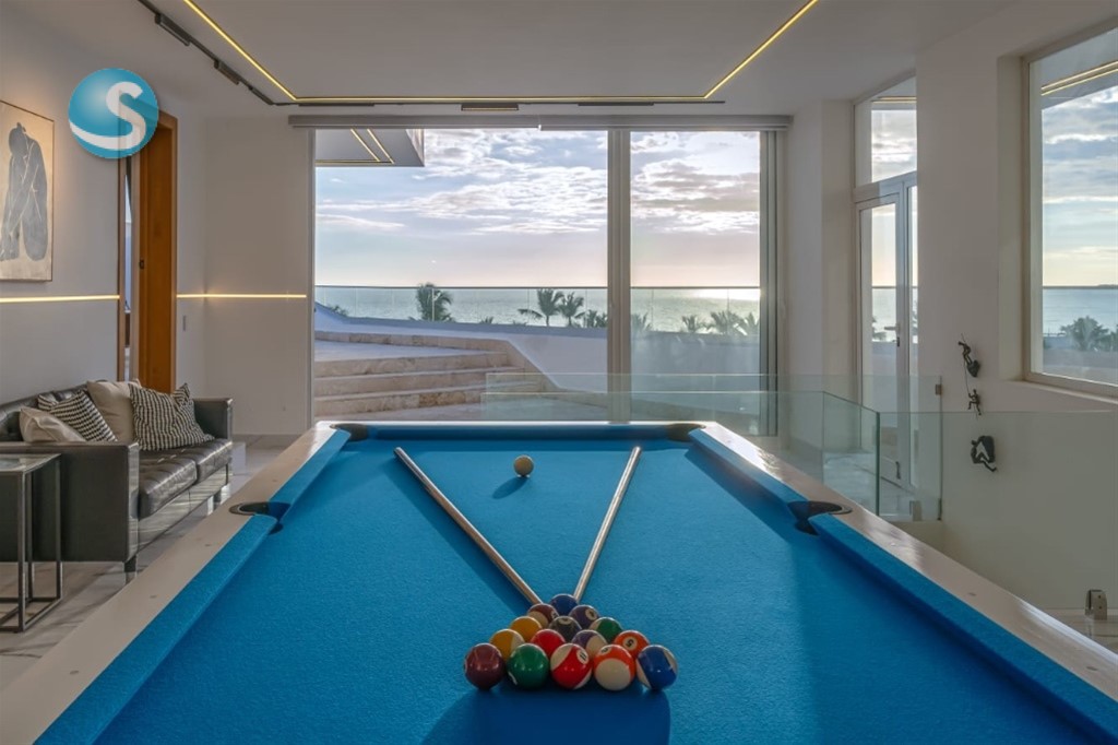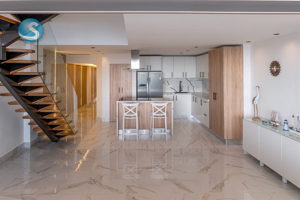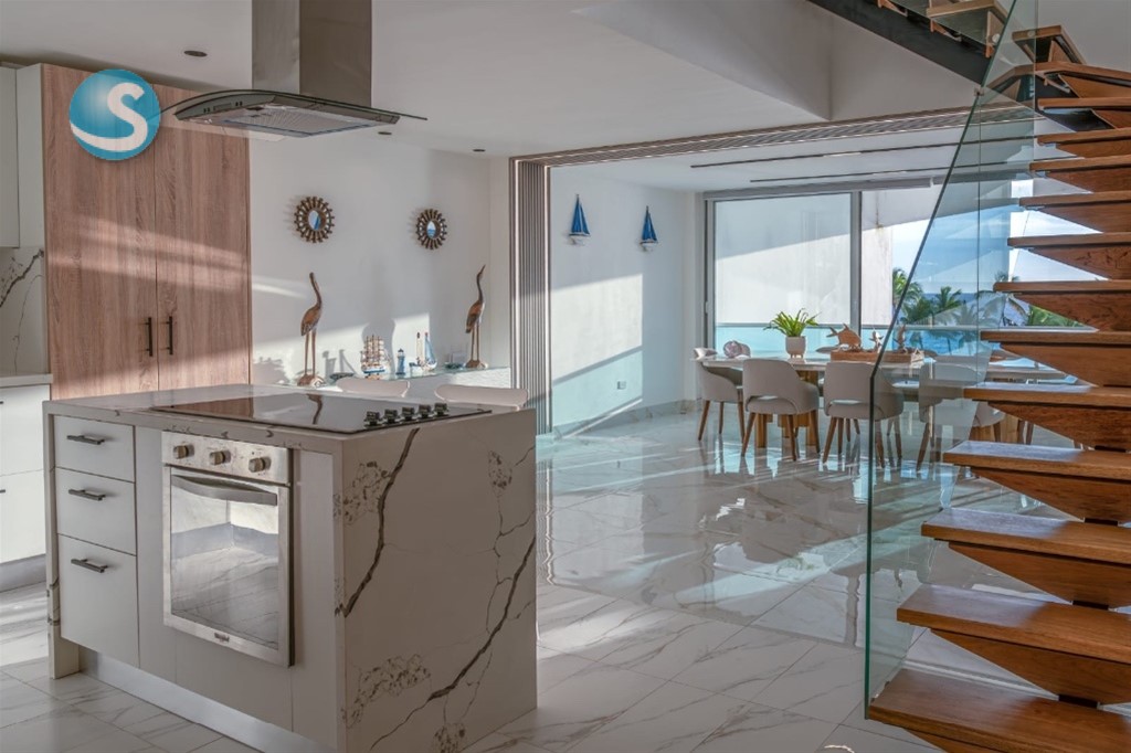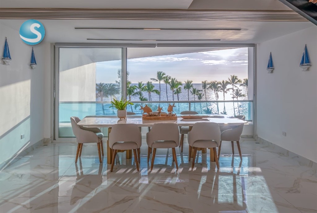 Penthouse de 460 m2 frente a la playa, Carretera Nueva, Condominio Marbella, Marbella, Juan Dolió, Rep. Dom. US$990.000 (negociable) / 4 Habitaciones / 5 Baños / Picuzzi Primer piso: * 1.ª Habitación (cama queen y clóset) * 2.ª Habitación (dos camas queen, closet y baño) * Baño de visitas * Cocina * Desayunador * Comedor con vista al mar Segundo Piso: * 3.ª Habitación (cama king con walking clóset y baño) * 4.ª Habitación (cama King, baño con tina, walking closet con vista al mar) * 1.5 Baño de visita * Sala (con billar) * Bar (vista al mar) * Estudio (vista al mar) * Picuzzi (vista al mar) * Terraza (vista al mar) * 1 Estacionamiento techado
