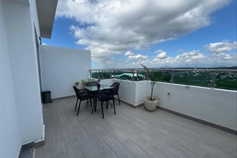 PENTHOUSE EN VENTA DE DOS PISOS EN MIRADOR DEL OESTE A 5 MINUTOS DE LA AV. 30 MAYO 208 metros en total 66 metros de terraza Año de construcción 2023 Piso 5 y 6 PRIMER PISO: Recibidor 3 habitaciones 2.5 baños Sala Comedor Cocina Área de lavado SEGUNDO PISO: Cocina Estar familiar Terraza destechada con reinstalación de jacuzzi 2 parqueos paralelos soterrados Características del residencial: Ascensor Planta full Área social con gimnasio y Piscina en construcción 3 apartamentos por piso Gas común Precio de venta negociable US$198,000.00 Mantenimiento RD$5,000.00 laury ventura 829-399-0815