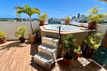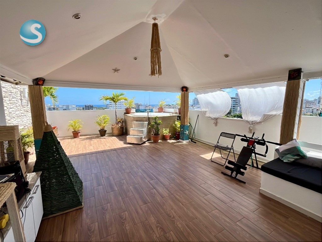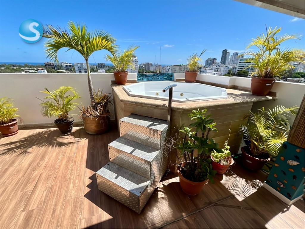 ??MIRADOR NORTE: PH de 3 Habitaciones con Terraza, Jacuzzi y vista al Mar, a 2 esquinas de Downtown Center, en venta por US$319,000 152 Mts + 50 Mts de Terraza Pisos 8 y 9 3 Habitaciones con Baño Walk-In Closet en dos Hab. Sala Comedor Balcón Cocina Área de Lavado Habitación de Servicio con Baño Terraza Vista al Mar Jacuzzi 2 Parqueos Paralelos Un (1) Ascensor Planta Full Seguridad 24/7 Gas Común (incluido en el mantenimiento de RD$11,000) En Venta por US$319,500 (incluye línea blanca
