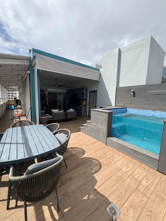 PH venta mirándote sur 1er nivel Sala Comedor Cocina Área de lavado Cuarto de servicio Balcón 2 habitaciones 2.5 baños 2do nivel Habitación principal Terraza Jacuzzi Family room 3 parqueos 7mo piso 289.09 mts netos El edifico cuenta con lobby Gym Ascensor Planta full US$590,000.00 RD$18,500.00 de mantenimiento Gas con medidor