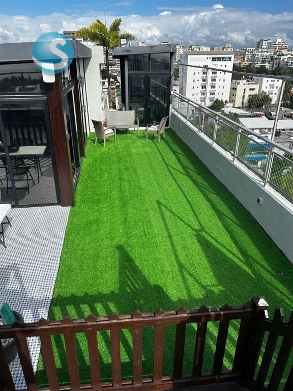 Imponente Penthouse de 3 Niveles en ??Mirador Norte Metraje neto: 422 m² Metraje de terraza: 166 m² 4 Parqueos paralelos Amenidades del Residencial Lobby amueblado Ascensor con acceso directo Área social con piscina Sala de eventos Distribución del Penthouse *Primer nivel Doble sala Comedor formal Pequeño estudio privado 3 Habitaciones, cada una con su baño Medio baño para visitas Cocina semiabierta con desayunador Área de lavado Habitación de servicio *Segundo Nivel 2 Habitaciones, cada una con su baño Estar familiar Oficina privada Escaleras en espiral hacia el tercer nivel *Tercer Nivel Picuzzi Terraza destechada con pérgola retráctil Terraza techada con TV y sofá Habitación con baño Baño de visita Kitchenette Área de BBQ Acceso interno por escalera caracol Acceso independiente por escalera exterior Precio venta: US$600,000 Mantenimiento: RD$18,000 (incluye gas)