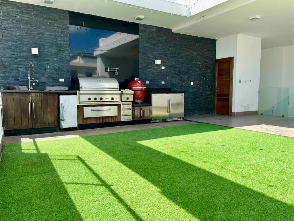 Espectacular penthouse de lujo ubicado en el corazón de Piantini: la zona más exclusiva y cotizada de Santo Domingo. Su diseño se destaca por su concepto contemporáneo, acabados de alta calidad y una distribución que maximiza la luz natural y el flujo de aire. Con una distribución ideal determinada en 3 niveles: Primer Nivel: 4 habitaciones Family room 4 baños Segundo Nivel: Sala - comedor Estudio Medio baño de visitas Cocina fría: Equipada con electrodomésticos de última generación y una isla central ideal para el entretenimiento. Cocina caliente Area de lavado Habitación de servicio con baño Tercer Nivel: Terraza con jacuzzy Deck de madera Area de BBQ Medio baño Entre las amenidades exclusivas de la torre, localizadas en el segundo nivel se incluyen piscina, gimnasio de última generación, salón de eventos, área infantil y lobby de lujo. Además, cuenta con 3 parqueos independientes y un locker. Ubicado a pocos pasos de las mejores tiendas, restaurantes gourmet, centros comerciales y servicios de la ciudad, este penthouse redefine el estilo de vida urbano con un toque de distinción y elegancia.