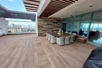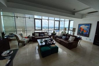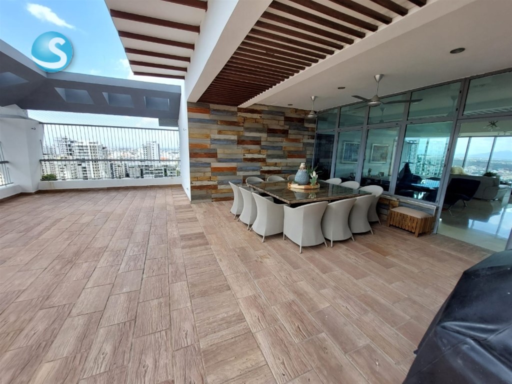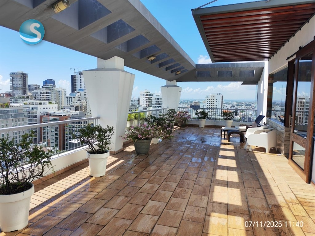 Penthouse en venta y alquiler en Piantini Amplio penthouse de 912 m² ubicado en Piantini, distribuido en los pisos 15, 16 y techo, con vista abierta a la ciudad. Cuenta con 7 habitaciones con baño, 2 habitaciones adicionales, aire acondicionado en todas las áreas, 2 cocinas, sala, comedor, baño de visitas, terraza, balcón, área de lavado, cuarto de servicio con baño, 5 parqueos y locker. Edificio con ascensores, planta eléctrica y seguridad 24 horas. Próximo a Blue Mall.