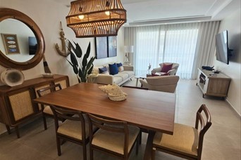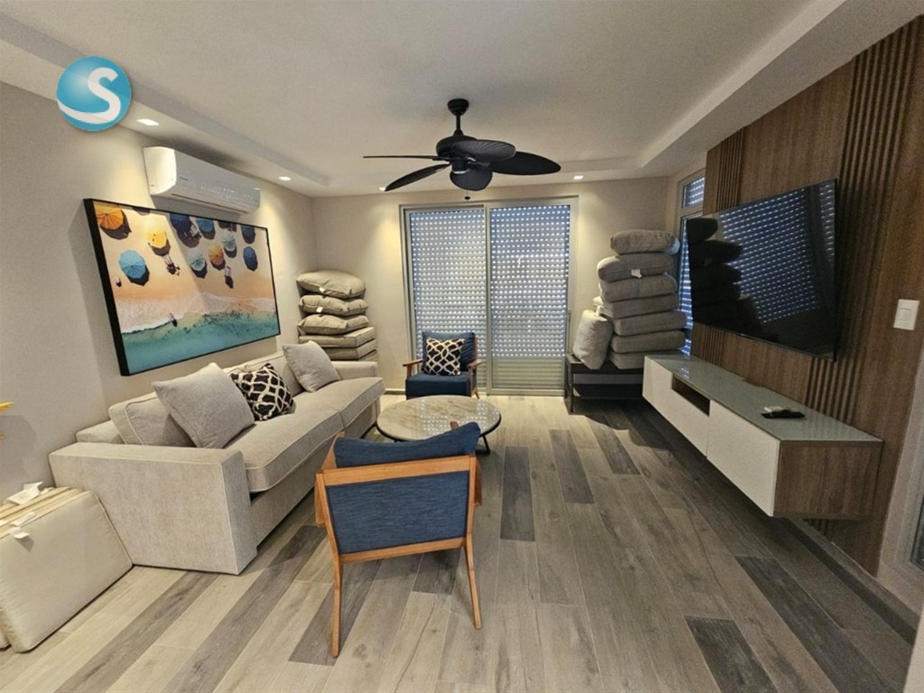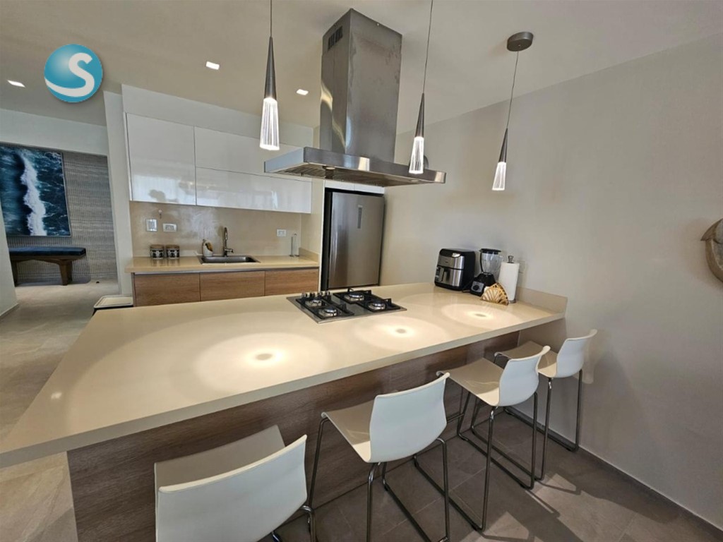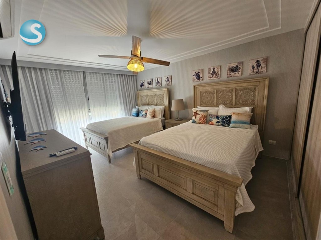 Espectacular Penthouse totalmente Amueblado en venta, en Playa Nueva Romana - 2 habitaciones - 2.5 baños - Sala - Balcón y en las habitaciones - Estudio con Sofa Cama - Comedor - Cocina con desayunador - Area de Lavado - Cuarto de Servicio - Parqueos - 2 Niveles Áreas Sociales - Terraza - BBQ - Jacuzzi Precio Venta Amueblado: US$ 575,000