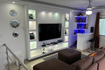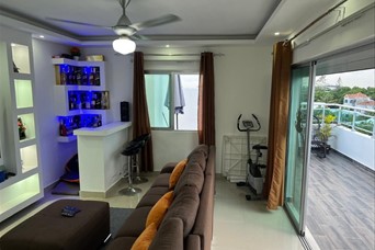 Código: OS-6187 Pent-house Avenida Ecológica, Santo Domingo Este Listo para mudarte. -202.75 metros : Primer piso 111 metros 2 piso 67 metros Parqueo 25 metros -2 parqueo techados -3 habitaciones -3 1/2 baño -Sala comedor, cocina -Área de lavado -Locker privado -Pre-instalación jacuzzi -Shuter en family Room -Hierros en ventanas