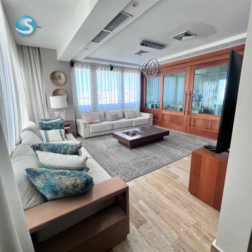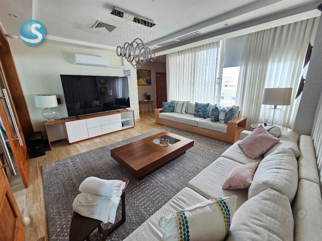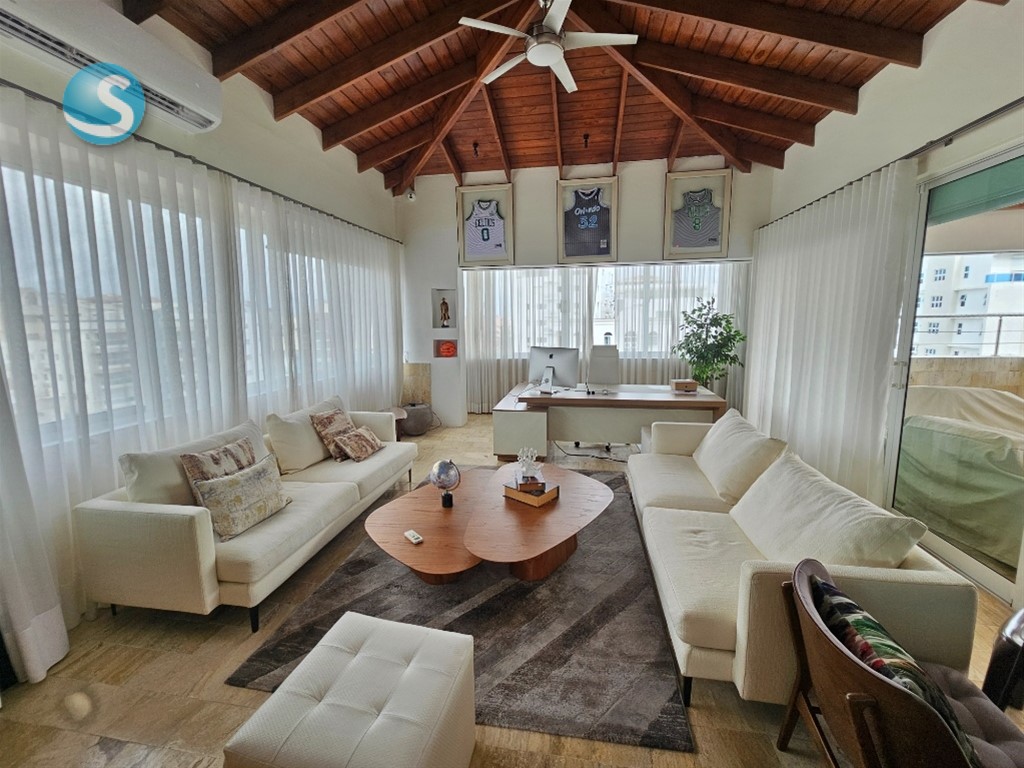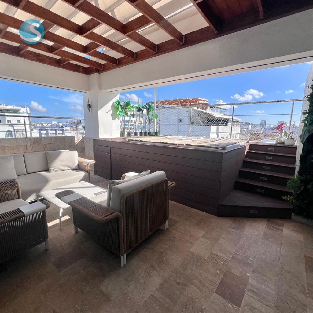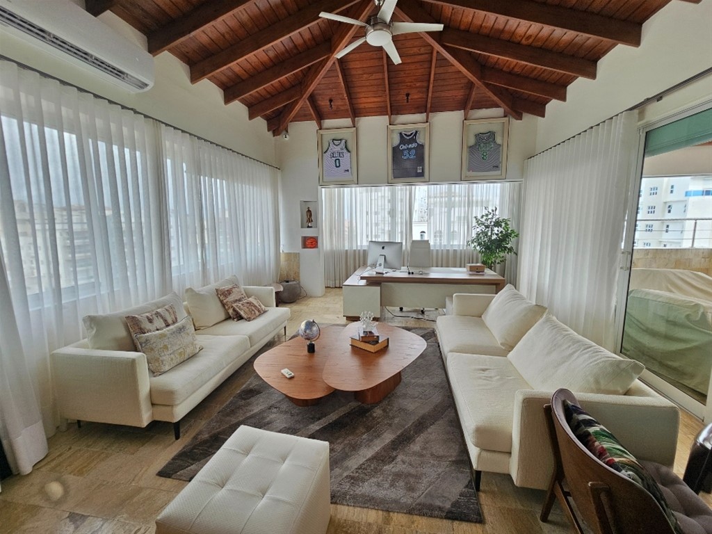 PentHouse de 3 niveles COMPLETAMENTE AMUEBLADO en Renacimiento Inversión: US$ 750,000.00 Mantenimiento:RD$9,000.00 420.00m2 3 parqueos DISTRIBUCION POR NIVEL 1er Nivel: 3 habitaciones cada una con su baño y vestidor, principal con balcon. ½ Baño o baño de Visita Family 2do Nivel: Balcon Baño de visita Sala Cocina fría Cocina Caliente Area de lavado Habitacion de servicio con su baño 3er Nivel: Terraza Techada con Jacuzzi Bar Sala de estar Area de Oficina Terraza Baño de visita CARACTERITICAS DE LA TORRE Lobby Ascensor Gas Común Planta full Intercom Seguridad 24/7 NO GYM NI PISCINA