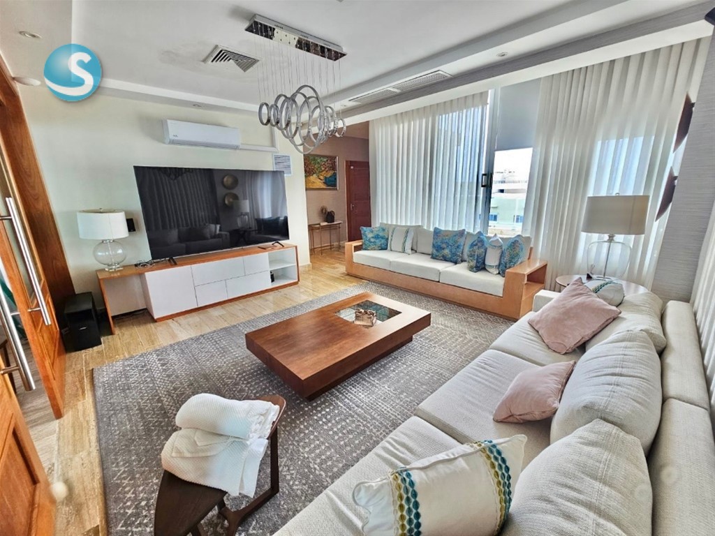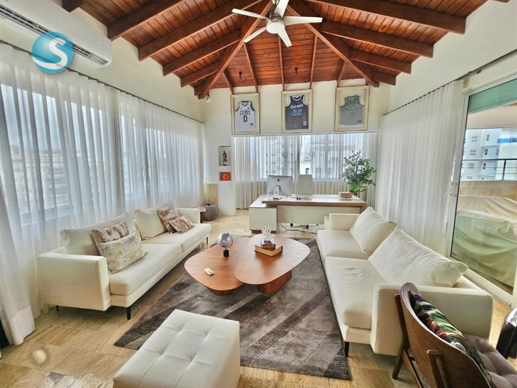 Penthouse en Venta RENACIMIENTO USD 750,000.00 Mantenimiento: RD$9,000.00 CARACTERÍSTICAS DEL PENTHOUSE: - 420 m2 - ?Pisos 5, 6 y 7 - ?3 parqueos techados (2 paralelos y 1 independiente) - ?Calentador - ?A/C central - ?Shutters - ?Techos en sheetrock - ?Pisos de mármol PISO 5: - 3 habitaciones - ?3 vestidores - ?3.5 baños - ?Balcón - ?Family room - ?Clóset de ropa blanca PISO 6: - Baño de visita - ?Balcón integrado - ?Sala - ?Comedor - ?Cocina fría con desayunador - ?Cocina caliente - ?Habitación de servicio - ?Área de lavado PISO 7: - Estar familiar - ?Estudio - ?Terraza techada con jacuzzi - ?Terraza con pergolado - ?Baño de visita CARACTERÍSTICAS DEL EDIFICIO: - Lobby - ?Intercom - ?Ascensor - ?Cisterna - ?Pozo - ?Gas común - ?Planta eléctrica full - ?Portón eléctrico - ?Seguridad - ?Cámaras de vigilancia