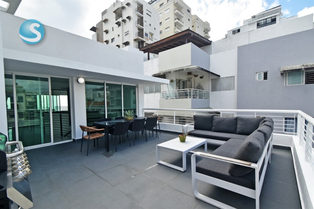 Venta de hermoso penthouse en Urb. Real 400 mts 4 habitaciones 4.5 baños 2 salas Comedor Desayunador Cocina Closet de ropa blanca 2 terrazas Balcón Área de lavado Habitación de servicio 2 parqueos paralelos y techados Terminaciones Pisos en porcelanato Madera preciosa Tope de cocina en melanina Toldos Amenidades y características de la torre Portón eléctrico Ascensor Luz 24 hrs Cámaras de seguridad Planta full Lobby Gas común Precio de venta US$425,000 Informacion: Fidelina Artiles 809-912-2561 [email protected]