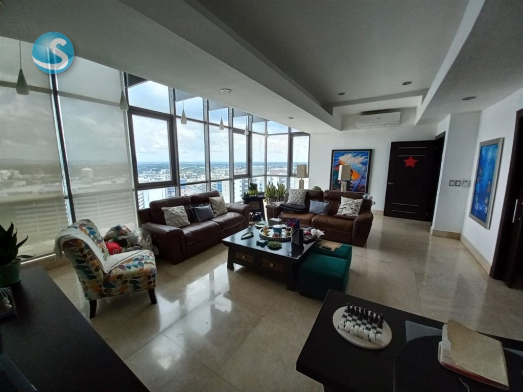 Hermoso penthouse 912 m2 con vista 360 grados, siete habitaciones con sus baños, 2 habitaciones adicionales todas con aire acondicionado, dos cocinas, sala de estar, comedor , sala de lujo, baño de visitas, amplia terraza con vista espectacular, balcon, 5 parqueos, locker, cuarto de servicio con baño, area de lavado. piso 15 , 16 y techo dos ascensores, dos plantas electricas seguridad 24 horas inf: 809-880-7748