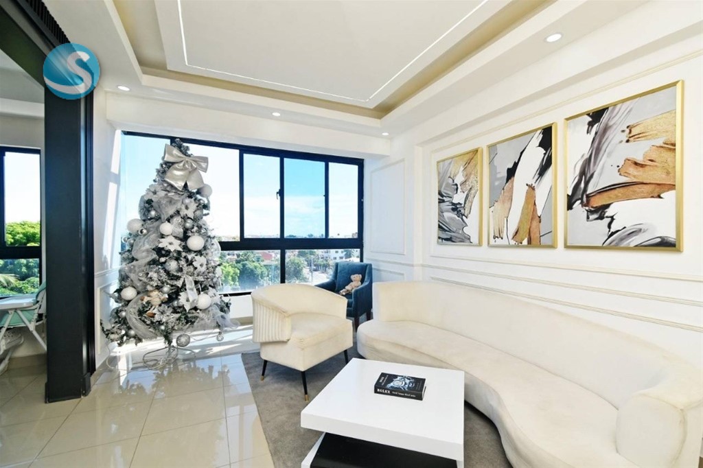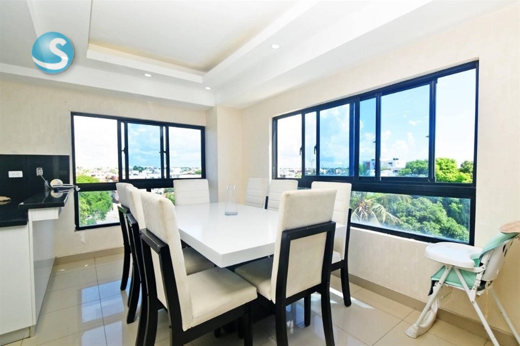 Penthouse doble Altura A pocos metros de la Av. Las Américas Vista al mar 60 mts de terraza 3 Habitaciones (Principal con baño y W/C 4.5 Baños Cocina Comedor Sala Área de lavado 2 parqueos Doble Altura Family room con acceso a la terraza TERMINACIÓN: Ascensor Planta full Lobby Portón Eléctrico Bomba sumergible Intercom Tope en granito negro Cámaras de Vigilancia Madera preciosa Porcelanato Cocina Modular Precio de venta US$255,450 YOHA. P.