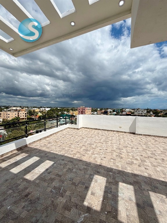 Descripción Penthouse en Venta, cerca del Hipermercado Ole de la marginal de Las Americas CARACTERÍSTICAS 222 metros cuadrados 46 metros de terraza Amplia Sala Comedor Estar familiar 3 habitaciones, principal con baño y walkig clóset 2 Baños 2 Baños de visitas Habitación de servicio Area de lavado 2 pagqueos techados Portón eléctrico Seguridad 24 horas