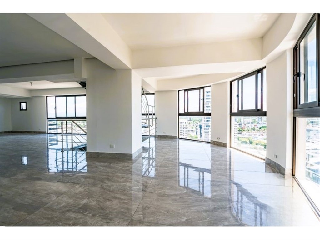Venta de Penthouse de 4 habitaciones, 3 Niveles, Pisos 15, 16 y 17. Piantini-Paraíso, Santo Domingo, D. N. Amplio y exclusivo Penthouse en venta, con impresionantes vistas panorámicas a todos los puntos de la ciudad; el cual comprende 3 niveles, de una torre de estilo vanguardista, en Piantini-Paraíso, el sector más céntrico y exclusivo de la ciudad .de Santo Domingo; con acceso inmediato a las principales vías y centros comerciales de la ciudad, como: Acrópolis Center, Blue Mall, Agora Mall, Galerías 360; así como también a: Centros deportivos, de salud, educativo; entre otros. 615 mts² en Total y 561 mts² de construcción, amplios y variados espacios interiores definidos en 3 niveles. 4 paqueos privados. Piso: 15: Terraza Estudio Sala Habitación principal con baño y doble walk in closet 2 habitaciones secundarias con baño y walk in closet Piso 16: Balcón-terraza Sala Comedor Estudio Comedor Cocina caliente 1 habitación con baño y walk in closet Cuarto de servicio Area de lavado Piso 17. Area social privada con su baño. Terraza techada y destechada con picuzzi Acceso directo a apartamento desde el ascensor La torre fue diseñada con ambientes creados para disfrutar de un estilo de vida superior, con 3 ascensores de última generación. Parqueos de visitas; sistema contra incendio; sistema de cámaras de seguridad en todas las áreas. Atractivas áreas sociales como: Lobby majestuoso, climatizado a triple altura Salón de eventos con lounge bar Salón ejecutivo y de cine Gimnasio con sauna y área de masajes Piscina, Jacuzzi, BBQ Area infantil techada y abierta Area de lockers y área para choferes Rooftop con impresionantes vistas de la ciudad e todos los ángulos. PRECIO: US$1,256,100, dólares. **Nuevo a estrenar Contáctanos [AHORA] Qué esperas ?
