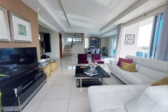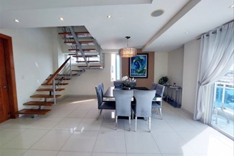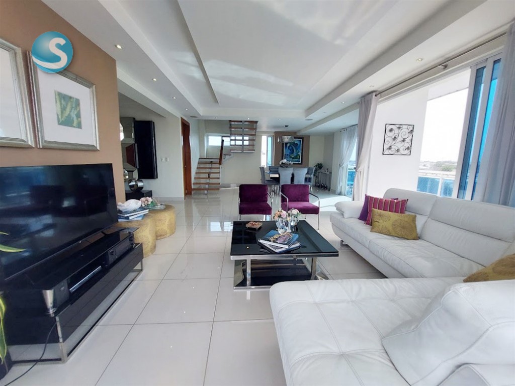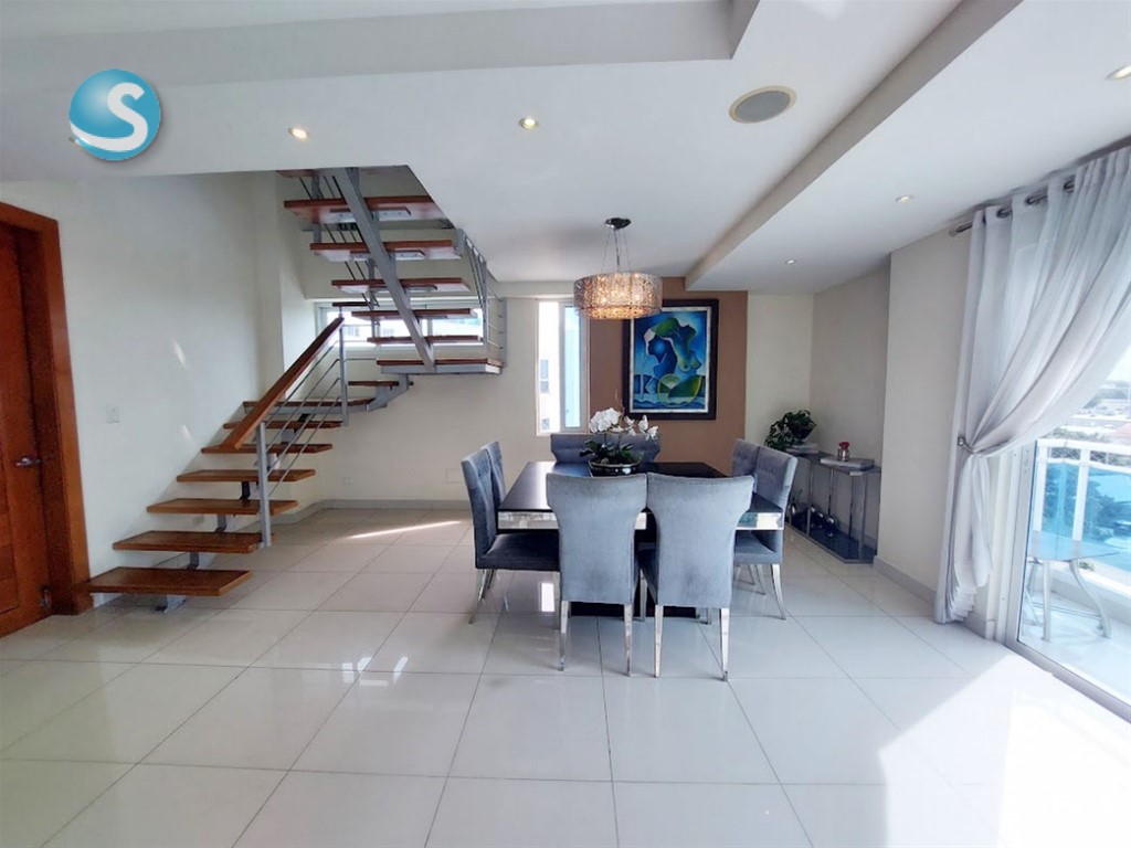 Descubre este penthouse ubicado en el exclusivo sector de Renacimiento en Santo Domingo con 408m2 cuadrados de construcción. Cuenta con 3 amplias habitaciones, cada una con su baño privado, 3 espacios de parqueo y locker. Disfruta de un balcón amplio con vistas panorámicas, un recibidor elegante, sala y comedor espaciosos, medio baño para visitas, una cocina moderna y terraza amplia techada y cerrada en el 2do. nivel, con un segundo medio baño. El penthouse dispone también en el 3er. nivel de 83m2 donde podrá construir un espacio adicional en construcción ligera, la cual tiene dos accesos, interna e independiente. Hermosa terminación con techo en la sala y comedor en yeso con luces empotradas, pisos en porcelanato y madera preciosa. La habitación principal y una de la secundarias tiene walk-in closet. El edificio cuenta con lobby, portón eléctrico, planta full y ascensor.
