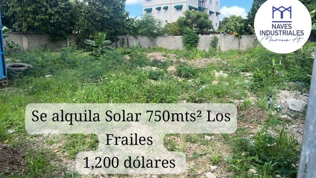 Se alquila Solar en Los Frailes próximo a Las Américas **750mts² ** 1,200 dólares AMENIDADES: **Excelente acceso **Totalmente Plano **Verja Perímetral **Luz y Agua 24/7 **Todos los servicios Esta y otras opciones disponibles en la misma zona Naves industriales MarinoA. 829-838-8000 Tenemos 10 años en el ámbito comercial e Industrial contamos con una gran variedad de naves y solares de diversos tamaños precios y ubicaciones