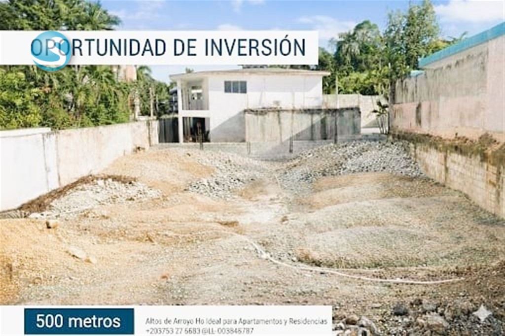 ATENCIÓN! Ponemos a su disposición dos Solares en venta – Altos de Arroyo Hondo II, Santo Domingo Invierte o construye tu casa en una de las zonas más exclusivas, tranquilas y de mayor plusvalía de la ciudad. ?? 500 m² ?perfecto para residencia ? Listos para construir ? A pasos de la Av. República de Colombia ? Sector seguro y consolidado ?? US$17,000 por m² ?? Agenda tu visita hoy. Yineidys Soto Cel: 8099352376