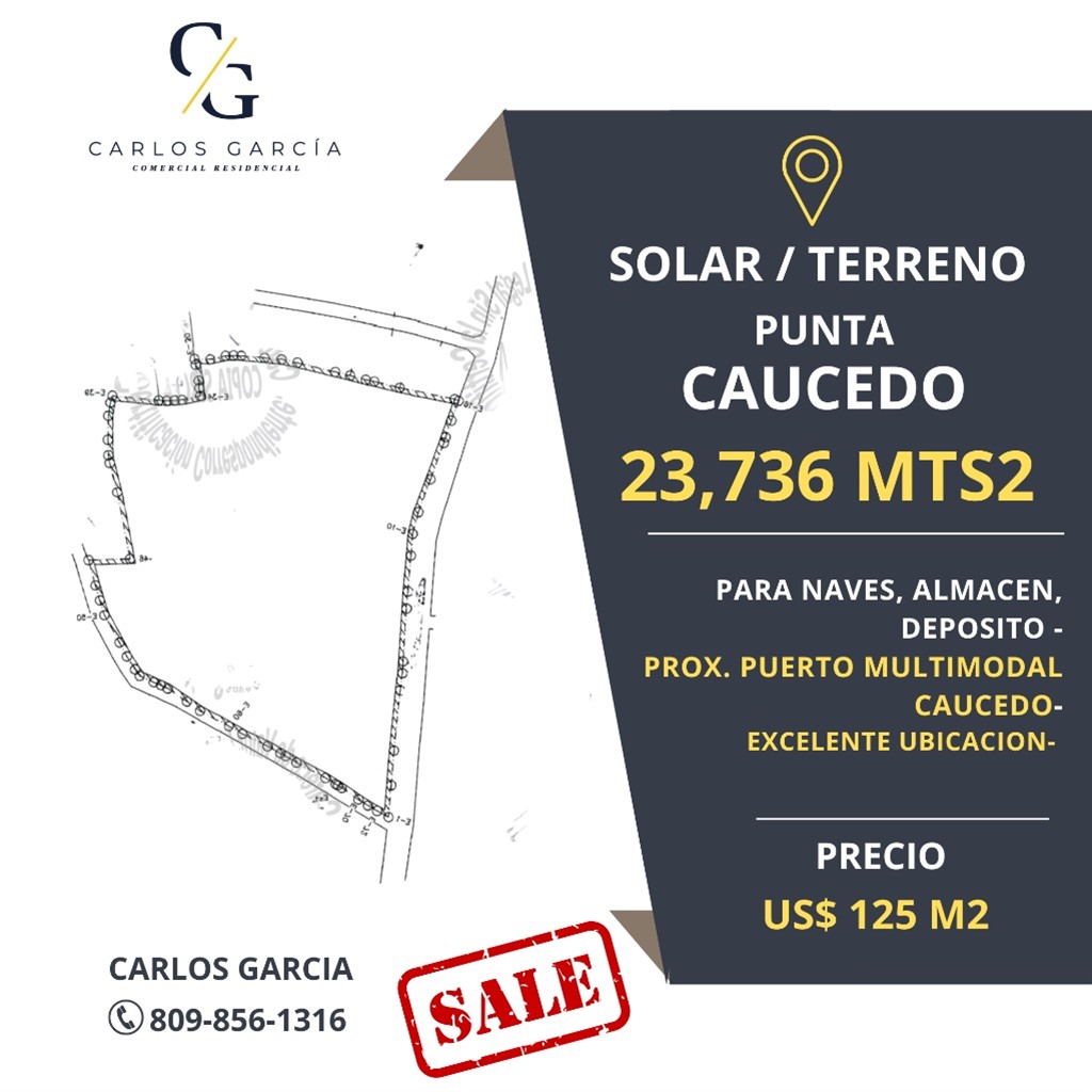 Terreno en Venta en Punta Caucedo, Boca Chica — Ideal para Naves Industriales y Centros Logísticos Ubicación estratégica: Próximo al Puerto Multimodal Caucedo, zona de alto crecimiento industrial del país. Extensión: 23,736 m² de terreno plano y de fácil acceso. Precio: US$125 por m². Este solar ofrece el espacio perfecto para desarrollar naves industriales, centros de distribución, almacenes cerrados o al aire libre, con excelentes vías de comunicación hacia Santo Domingo, el Aeropuerto Internacional de Las Américas y la Autopista Las Américas. Su ubicación lo convierte en una oportunidad de inversión industrial de alto rendimiento, ideal para empresas de logística, transporte, almacenamiento o manufactura que busquen expandirse cerca del puerto. -Ubicación: Punta Caucedo, Boca Chica -Superficie: 23,736 m² -Precio: US$125/m² -Uso ideal: Naves industriales, almacenes, zonas logísticas, depósitos o patios de carga.