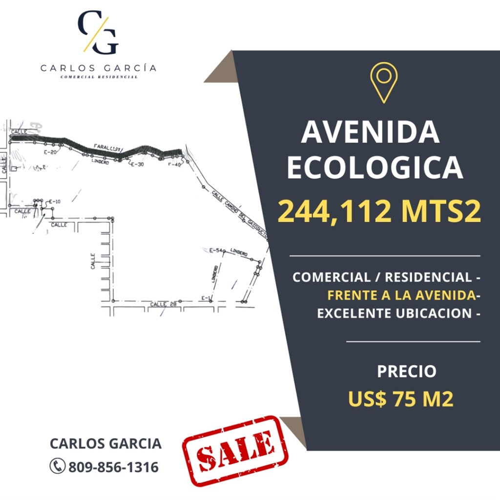 Terreno en Venta en la Avenida Ecológica – Santo Domingo Este Presentamos un amplio terreno o solar en venta de 244,112 m², estratégicamente ubicado en la Avenida Ecológica, Santo Domingo Este, una de las zonas de mayor crecimiento y desarrollo inmobiliario de la ciudad. Este solar en venta en Santo Domingo Este posee vocación comercial y residencial, lo que lo convierte en una excelente oportunidad para inversionistas y desarrolladores. Características principales: • Superficie total: 244,112 m² • Ubicación: Avenida Ecológica, Santo Domingo Este • Excelente visibilidad y acceso vial • Zona de alta proyección y crecimiento urbanístico Ideal para proyectos como: • Complejo de naves industriales • Naves de almacenamiento y centros logísticos • Parques empresariales o centros de distribución • Proyecto residencial de gran escala • Inversiones comerciales estratégicas Invertir en este terreno en la Avenida Ecológica significa asegurar una posición privilegiada en una de las zonas con mayor plusvalía de Santo Domingo Este, donde convergen desarrollos inmobiliarios, proyectos residenciales modernos y espacios para el comercio e industria. Contáctenos hoy mismo para más información sobre este terreno en venta en Santo Domingo Este y descubra todo el potencial que ofrece para su próximo proyecto inmobiliario.