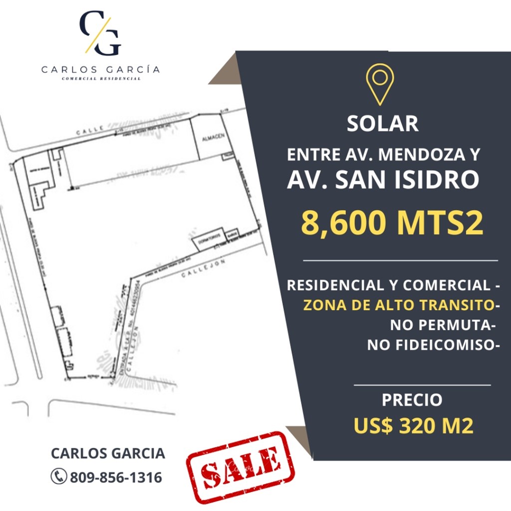 Solar en Venta de 8,600 m² entre Carretera de Mendoza y Av. San Isidro – Santo Domingo Este. Ubicación privilegiada en una de las zonas de mayor crecimiento y tránsito de Santo Domingo Este, con acceso directo tanto desde la Carretera de Mendoza como desde la Avenida San Isidro. Ideal para desarrollo comercial o residencial: Perfecto para plazas comerciales, supermercados, almacenes, naves industriales o proyectos residenciales de bajo costo. Zona de alta demanda y visibilidad, ideal para inversionistas que buscan plusvalía y retorno seguro. Precio por metro cuadrado: US$320 Terreno llano y titulado: 8,600 m² disponibles ¡Oportunidad única para desarrollar tu próximo gran proyecto en una ubicación estratégica! Contáctanos hoy mismo para más información o agendar una visita. MAS OPCIONES DE SOLARES Y TERRENOS: https://www.feroca.net/properties/republica-dominicana/santo-domingo/santo-domingo-este/lot-type?sort_by=published_at-desc