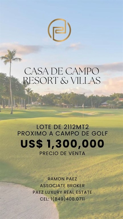 Excelente solar con vista al driving range de Dye Fore, una de las zonas mas codiciadas y exclusivas de Casa de Campo Resort & Villas. Categoria: Solar Ubicacio´n: Casa de Campo Resort & Villas Solar: 2,112m2 Precio: US$ 1,300,000 Para más información : Ramón Aníbal Páez Paez Luxury Real Estate Cel: +1 (849) 408-0711