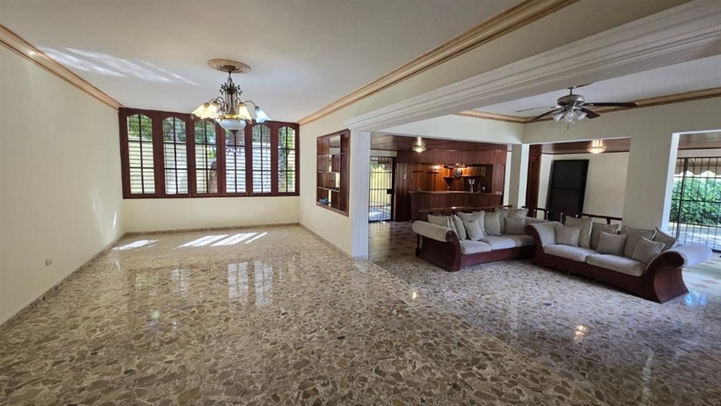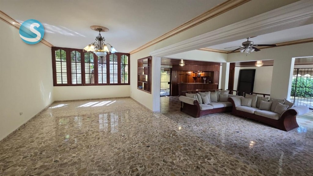 *¡Impresionante Casa de 3 Niveles en Los Cacicazgos! ??* Ideal para familias que buscan *espacios amplios, y comodidad* en una de las zonas más exclusivas de Santo Domingo. ?? *Venta:* US1,800,000 ?? *Alquiler:* US4,500 *Detalles generales:* - *Solar:* 1,200 m² - *Construcción:* 625 m² - *Habitaciones:* 5 - *Baños:* 4.5 - *Parqueos:* Hasta 10 vehículos *Distribución por niveles:* *Nivel 1:* - 2 Salas - Comedor - Estudio - Recibidor - Bar - 1 Habitación con baño - Cocina caliente y fría - Área de lavado - 2 Habitaciones de servicio independientes - ?Patio - ?Piscina *Nivel 2:* - Terraza frontal - 4 Habitaciones (principal con balcón, baño y walk-in clóset) - Biblioteca con balcón - Clóset de ropa blanca *Nivel 3:* - Estudio - Área común *Amenidades terminaciones:* - Madera (cedro y caoba) - Pisos en mármol - Jambas en puertas - Sistema de alarma - Panel solar - Bomba de agua ??Ubicada en Los Cacicazgos, zona tranquila, segura y de alta valorización. Conctatanos ; 829-683-2675 Kelvin Mateo.