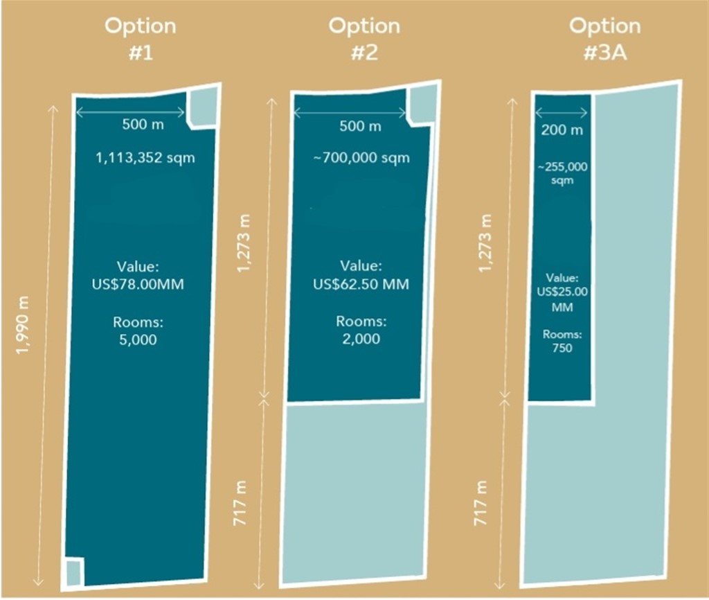 En MACAO (inmediatamente al Norte de Bavaro) , se vende : 1.113.352 m2 con 500 m. de frente Playa 80 dolares / m2 * Se pueden construir 5.000 Dormitorios Si se necesita menos metraje , tambien se ofrecen estas opciones : 700.000 m2 con 500 m. de frente Playa 90 dolares / m2 * Se pueden construir 2.000 Dormitorios 255.000 m2 con 200 m. de frente Playa 99 dolares / m2 * Se pueden construir 750 Dormitorios .