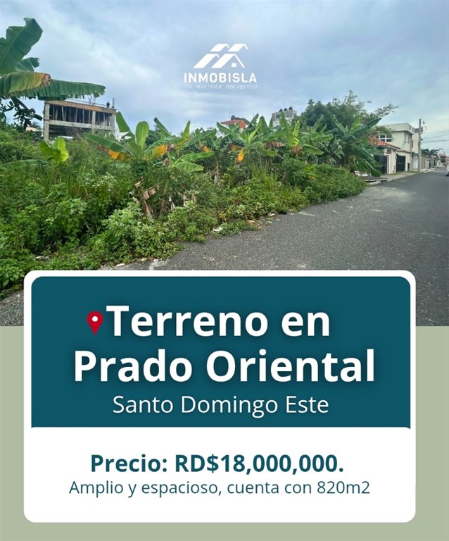 ?? ¡Oportunidad única en Prado Oriental! Santo Domingo Este ¿Buscas invertir en una zona en crecimiento? Este amplio terreno de 820m² es perfecto para tu próximo proyecto. ????? ?? Precio: RD$18,000,000 ? Ideal para desarrollo residencial o comercial ? Zona en constante valorización ? Calle asfaltada y entorno con construcciones modernas Haz una inversión inteligente con INMOBISLA ??? ?? Contáctanos y agenda tu visita hoy mismo. #TerrenoEnVenta #InversiónSegura #PradoOriental #INMOBISLA