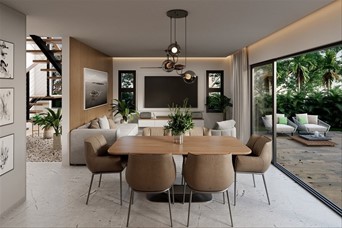 DESDE US$190,000.00 VILLA DE 3 HABITACIONES - 2 PARQUEOS Piscina, Patio, Rooftop, Cocina Modular, Área de Lavado, 3 Dormitorios Balcón Terminaciones y Caracteri´sticas Principales: Moderna villa con 185.82 M2 de Construccio´n Techado 230.25 M2 de construccio´n Bruto 2 Parqueos Piscina de 2.40 Mts x 4.00 Mts con 9.96 M2 Patio con 44.50 M2 Pre-Instalacio´n de A/A en Dormitorios y Sala-Comedor Acceso a Rooftop de 72.06 M2 con Pre-Instalacio´n de Jacuzzi Fina Terminacio´n en Paredes Ventanas y puertas corredizas en Aluminio Puertas en Madera Preciosa Cocina Modular con Estufa de tope incluida Tope de cuarzo de tono claro o similar Piso en Porcelanato Pre-instalacio´n para calentador de li´nea Ban o principal con lavamanos Doble Ban os con mampara en las duchas Escalera Meta´lica con Peldan os de Madera 1er Nivel Descripcio´n Sala Comedor Cocina con isla 1/2 Ban o Area de Lavado Patio con Piscina de 2.40 Mts x 4.00 Mts Recibidor 2 Parqueos 2do Nivel Descripcio´n Dormitorio Principal con Ban o yWalking Closet Balco´n dos Dormitorio Secundario con Walking Closet Ban o Comu´n Closet de Ropa Blanca Acceso a rooftop Descripción General Esta moderna villa en Punta Cana es una joya de lujo enclavada en el paraíso caribeño. Con una construcción techada de 185.82 metros cuadrados y un total de 230.25 metros cuadrados de construcción bruta, esta propiedad ofrece una combinación perfecta de comodidad y elegancia. En el primer nivel, un espacio abierto y luminoso une la sala de estar, el comedor y una cocina con isla central. Este espacio se conecta con un encantador patio que alberga una piscina de 2.40 metros x 4.00 metros, creando un ambiente relajante. También encontrarás un medio baño, área de lavado y dos espaciosos parqueos. El segundo nivel cuenta con el dormitorio principal con baño y walk-in closet, dos dormitorios secundarios con walk-in closets, un baño común y un espacio para ropa blanca. Además, la propiedad ofrece acceso a un rooftop con terraza social y vistas panorámicas impresionantes. Esta villa es la opción ideal para disfrutar del estilo de vida caribeño en su máxima expresión. ¡No dejes escapar esta oportunidad!
