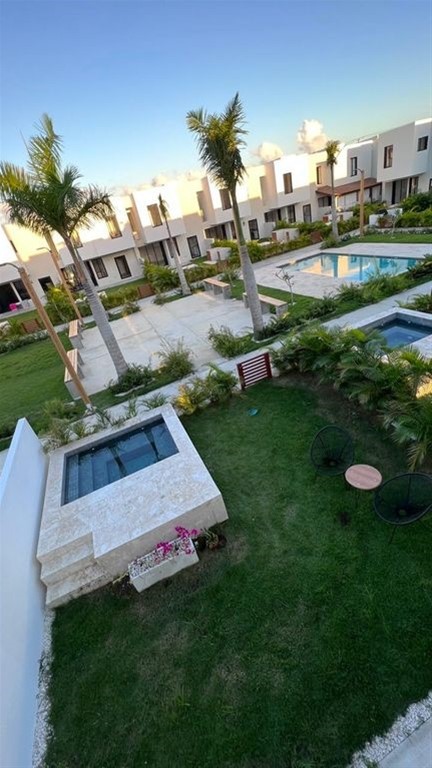 Hermosa villa en Costa Cana Villa townhouse Residencial concepto cerrado Villa townhouse 2 niveles Amueblada full 3 habitaciones 2.5 baños Sala Comedor Cocina Área de lavado Picuzzi privado 65 metros de Patio privado Piscina común Área común 2 parqueos 222,000 Dólares Contol de Acceso Seguridad privada 24/7 A solo 5-7 minutos de Downtown, coco bongo, plaza San Juan, supermercados, farmacias, bancos, restaurantes, cine, ikea, tienda A solo 8 minutos de la Playa A solo 15 munitos de Blue Mall A solo 17 minutos de el Aeropuerto punta Cana