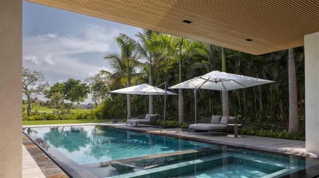 Hacienda B-14 – Modern Luxury Villa Punta Cana Resort & Club Precio: USD $3,600,000 Forma de pago: Flexible en planes de pago y/o monedas. Descripción General Exclusiva villa de lujo contemporáneo de 4 habitaciones, ubicada en la codiciada comunidad de Hacienda, dentro del prestigioso Punta Cana Resort & Club. Diseñada con líneas limpias y espacios integrados que maximizan la luz natural y ofrecen vistas despejadas al hoyo #4 del campo de golf Hacienda y a los lagos circundantes. Completamente amueblada con piezas de diseño de alta gama y equipada con tecnología smart home, electrodomésticos de última generación, simulador de golf indoor, y gimnasio privado, todo cuidadosamente curado para ofrecer el equilibrio perfecto entre lujo, funcionalidad y estilo. Características Generales Terreno total: 1,971.36 m² (1,731.36 m² + 240 m² de jardín adicional cedido por Grupo Punta Cana) Construcción total: 985 m² Área techada: 753 m² Área deck + piscina: 120 m² Rooftop: 112 m² Distribución Interior 4 habitaciones, cada una con baño completo 1 baño de visitas/piscina Sala de TV / estudio Cocina caliente + cocina fría 2 habitaciones de servicio con baño Área de lavandería y patio externo Cuarto técnico (eléctrico + datos) Despensa independiente en cocina caliente Cocina y Área Exterior Cocina fría con electrodomésticos de alta gama: horno, lavaplatos, ice maker, refrigerador familiar, nevera de vinos, dos bandejas de basura ocultas Encimera de Dekton con mesa integrada de roble natural para 10 personas Área BBQ con fregadero, encimera Dekton y bandeja de basura oculta Terraza completa con comedor exterior, área de estar y conversation pit techado Piscina estilo balinés de 13x4 m con jacuzzi independiente Espacio para tumbonas Master Suite Balcón con vista al campo de golf Doble clóset (vestidor + clóset pasillo) Caja fuerte y sección de seguridad para relojes Baño principal con piezas Antonio Lupi: Ducha doble, ducha de mano, lavamanos doble, bañera y sanitario privado Amenidades Especiales Gimnasio de 40 m²: sistema multi-pesas, bicicleta indoor y accesorios Simulador de golf profesional: GCQuad Launch Monitor, proyector, pantalla de impacto de 12 m² Garaje techado para 2 vehículos + carrito de golf Con tomas AC/DC para autos eléctricos Tecnología & Domótica Red WiFi 7 en toda la casa (incluyendo exteriores) Cableado ethernet en todas las habitaciones Sistema de sonido de alta gama: 16 parlantes en sala y deck 4 exteriores Sistema 5.1 en sala TV y habitación principal Parlantes en gimnasio y baño principal Controles inteligentes para: iluminación (Lutron), sonido, climatización, persianas y accesos Sistema CCTV perimetral con visión nocturna y sensores de movimiento Paneles solares de 10 KW/h con inversor y control inteligente Gastos Operativos Aproximados Mantenimiento del resort: USD $850 / mensual Electricidad: USD $650–850 / mensual Agua: USD $150 / mensual Jardine