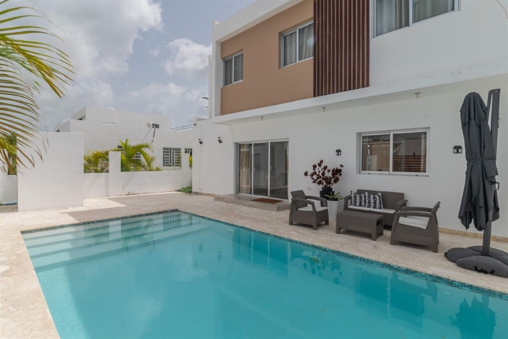 Esta impresionante casa en Bávaro, Higüey, ofrece un estilo de vida lujoso con 266 metros cuadrados de construcción y terreno. Cuenta con 3 habitaciones amplias, la principa con walkyn closet, 2 baños modernos y 2 espacios de parqueo. La propiedad incluye un recibidor elegante, sala de estar, comedor, cocina equipada y un desayunador acogedor. Disfrute de la terraza techada, el patio con piscina y el family room ideal para reuniones. Además, dispone de un área de BBQ, patio interior, jardín y marquesina. Servicios adicionales como telecable, aire acondicionado, pozo, calentador, filtros y ademas cuenta con un sistema de camaras garantizan comodidad y seguridad. Este proyecto se encuentra a 20 minutos del Aeropuerto Internacional de Punta Cana, 15 minutos de las principales playas de Bávaro – Punta cana, a 2 minutos de Downtown – Cocobongo y a 5 minutos Centro Médico. Areas comúnes: -Garita con control de entrada -Mascotas permitidas -Recreación -Piscina Para mas informacion Lic. Ana Lisette Encarnacion 8093071009