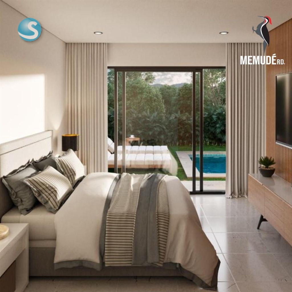 CARACTERISTICAS DEL PROYECTO Proyecto compuesto por 104 elegantes villas independientes de 2 y 3 hab. de uno y dos niveles. VENTAJAS DEL RESIDENCIAL Piscina con gazebo. Cancha multiuso. Acceso controlado con seguridad 24/7. Senderos verdes. Acceso directo por la circunvalación. Parque infantil. TERMINACIONES Pisos en porcelanato. Puerta principal en madera preciosa. Cocina modular con desayunador. Pre instalación de A/C Villa tipo A - 2 Habitaciones 111.16 mt2 de Construcción, 260mt2 de solar y 69mt2 aprox. de patio Sala Comedor Cocina Habitación principal con walking closet y baño Habitación secundaria con closet Baño secundario completo Área de lavado Marquesina doble Piscina no incluida Villa Tipo B- 3 Habitaciones 121.10 Mt2 de construcción 260 Mt2 de solar y 52Mt2 prox. de patio Sala Comedor Cocina Habitación principal con walking closet y baño Habitaciones secundarias con closet Baño secundario completo Área de lavado Marquesina doble Piscina no incluid Villa tipo C- 3 Habitaciones 168.5 Mt2 de construcción 260Mt2 de solar y 83 Mt2 aprox. de patio Primer Nivel Sala Comedor 1/2 Baño Cocina Àrea de lavado Marquesina doble Piscina no incluida 2do Nivel 168 Mts de contruccion, 260 Mts de solar y 83 Mt2 Aprox. De Patio Segundo Nivel Habitación Principal con walking closet y baño 2 Habitaciones secundarias con closet Baño secundario 3 Balcones Entrega: Noviembre 2026 Junio 2027 Ref.004