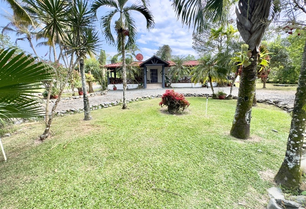 VENDO DE OPORTUNIDAD HERMOSA VILLA DE UN NIVEL, dentro de un sector de villa campestre con seguridad privada, calles asfaltadas y acceso al río. A tan solo 35 minutos de la ciudad de Santo Domingo. Consta de: 6,648.68 mts2 de terreno 250 mts2 de construcción de villa en un solo nivel de 3 habitaciones cada una con su baño (la habitación principal con closet revestido en cedro) con aires acondicionados, cocina, terraza que rodea hasta tercera parte de villa. 2 gazebos: el principal es grande, 1/2 baño, bar equipado, el segundo con amplio BBQ. casa para empleado de 2 habitaciones y baño. Piscina desmontable. Cercada en malla siclonica, portón eléctrico, cisterna, dos tinacos, planta eléctrica de 35 kilos, Inversor, arboles adultos frutales, jardines, está rodeado de montañas, hay ríos cercanos, las calles están asfaltadas y pavimentadas, se encuentra a 40 minutos de la ciudad, con portón eléctrico y cuarto de máquinas.