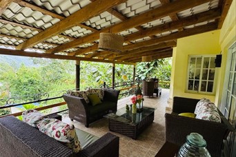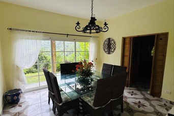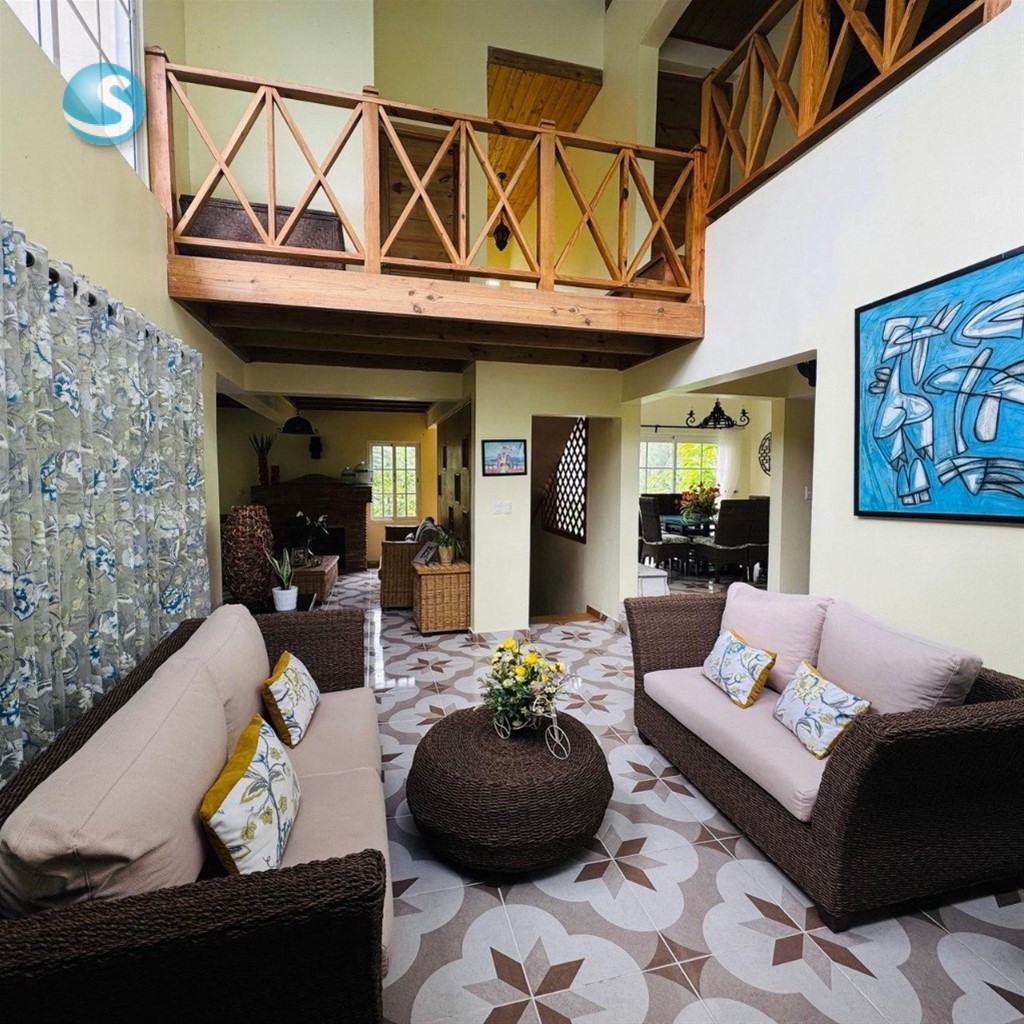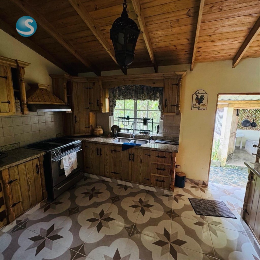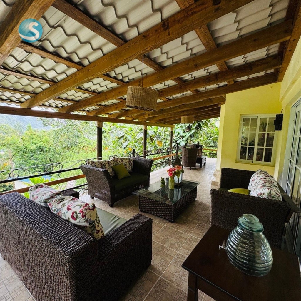 BONAO Vendo VILLA ECOLOGICA en Bonao próximo a la Carretera Arroyo Tireito. Amenidades: -Piscina -Terraza tipo deck -BBQ -Gazebo de cana -Casa de empleado con pequeño almacén -Área de jardin -Estanque natural -Casa de Arbol -Rio que lo bordea en la parte norte Características Casa: Sotano o nivel de piso: -Amplia sala -Bar -Mesa de billar -Medio baño -Parqueo para más de 4 vehículos. Primer nivel: -Amplia terraza semiperimetral techada de madera y aluzinc tipo teja -sala -Estar -Comedor -Cocina -Habitación con baño y medio Segundo nivel: -2 habitaciones con baño y mezzanine, una de las con balcón semiperimetral y una habitaciòn con baño y pequeño balcón Precio: USD$420,000 TASACIÓN RECIENTE PD: INCLUYE TODO EL MOBILIARIO
