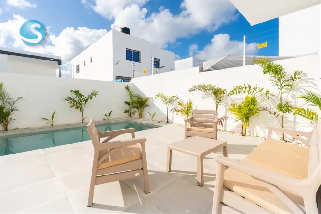 MLS# 26-318 Villa Amueblada en Venta en Brisas de Punta Cana. A Estrenar!! A solo 15 minutos desde el aeropuerto de Punta Cana y a 5 minutos desde el centro de la ciudad. Piscina y Jacuzzi incluido 3 Habitaciones 2.5 baños Área de BBQ Balcón con vista a la piscina Cocina totalmente equipada Barbacoa Piscina privada Muebles de exterior Aire acondicionado en todas las habitaciones, incluida la sala de estar Sala de estar con un televisor LCD de 65 pulgadas Habitación principal equipada con televisor de 40 pulgadas Ducha al aire libre Balcón 250 m² de terreno y 150 m² de construcción