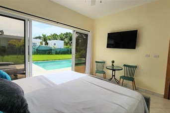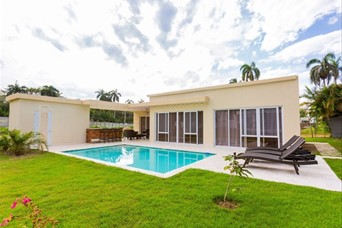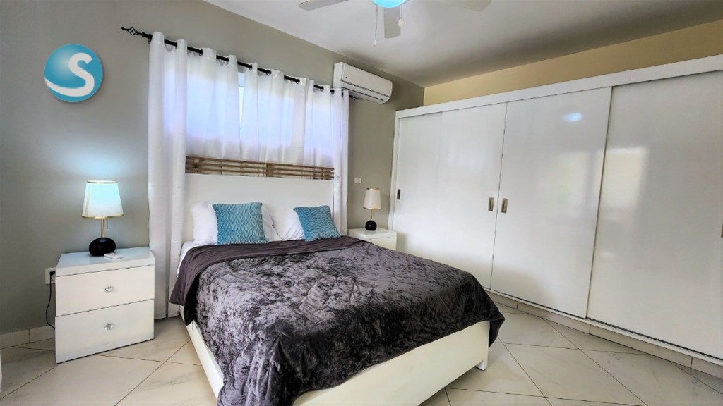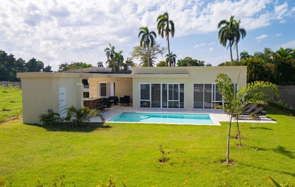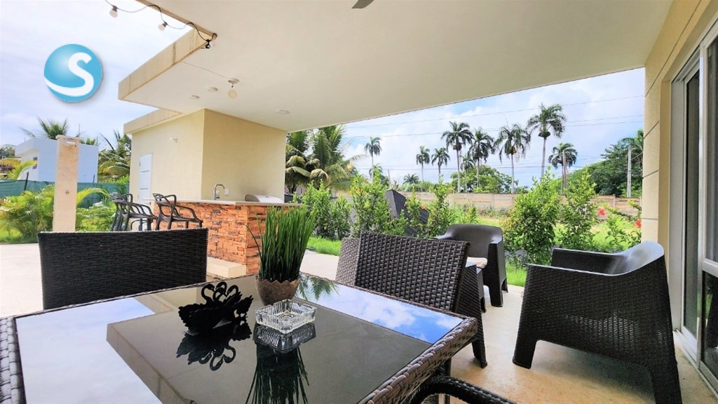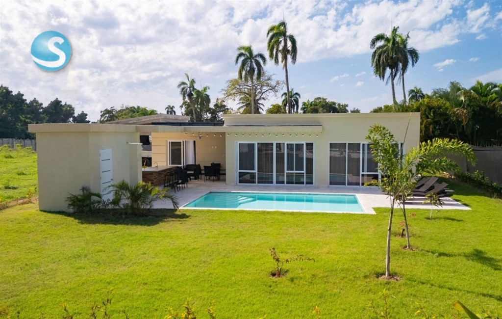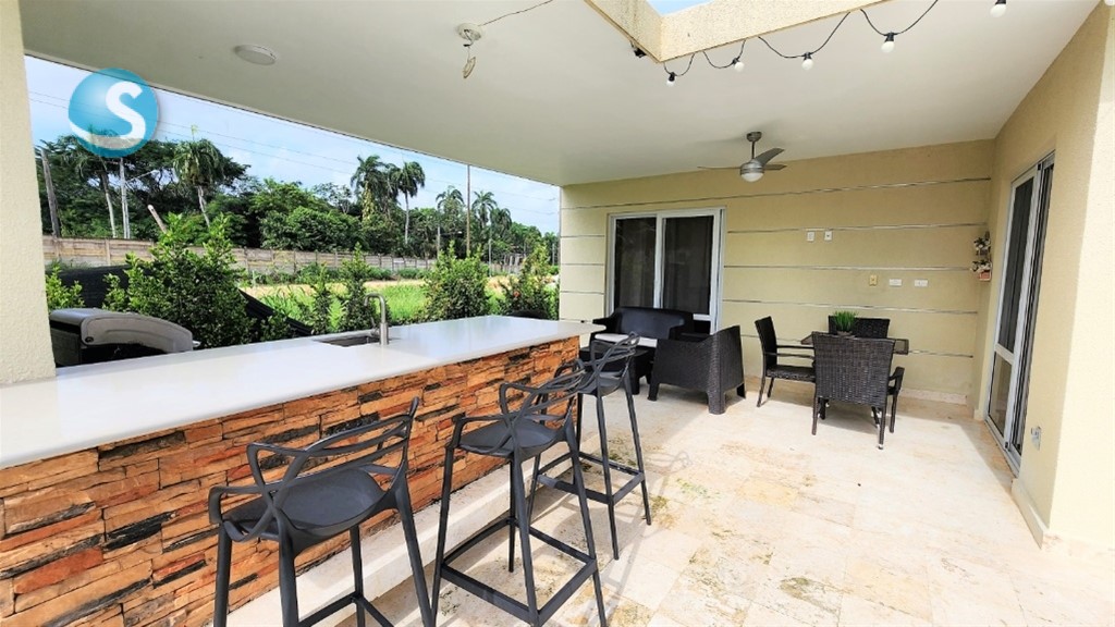 Villa en Venta en Encuentro, Cabarete – Amueblada Hermosa villa moderna, construida en 2024, ideal para residencia o inversión turística. Características: Solar: 464.59 m² Construcción: 110.39 m² 2 habitaciones con aire acondicionado 2.5 baños Sala Cocina moderna Área de barbacoa Piscina privada Parqueo para 2 vehículos Totalmente amueblada Residencial con: Seguridad 24/7 Planta eléctrica Mantenimiento de áreas comunes Mantenimiento: USD 262 mensual Ubicación: A 29 km del aeropuerto y 0.75 km de la playa Precio: USD 285,000